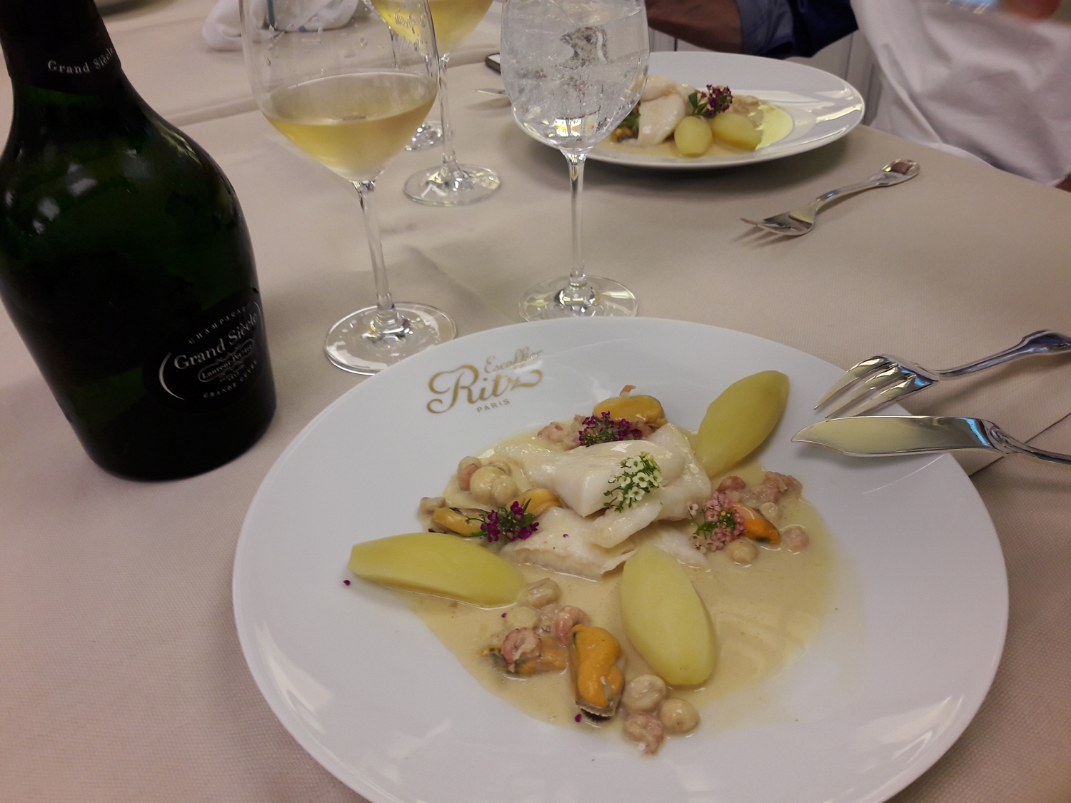 Pour cet accord avec la cuvée Grand Siècle, il est choisi de cuisiner un poisson en sauce. Nous nous lançons donc sur un classique du Ritz : le Saint-pierre à la normande.