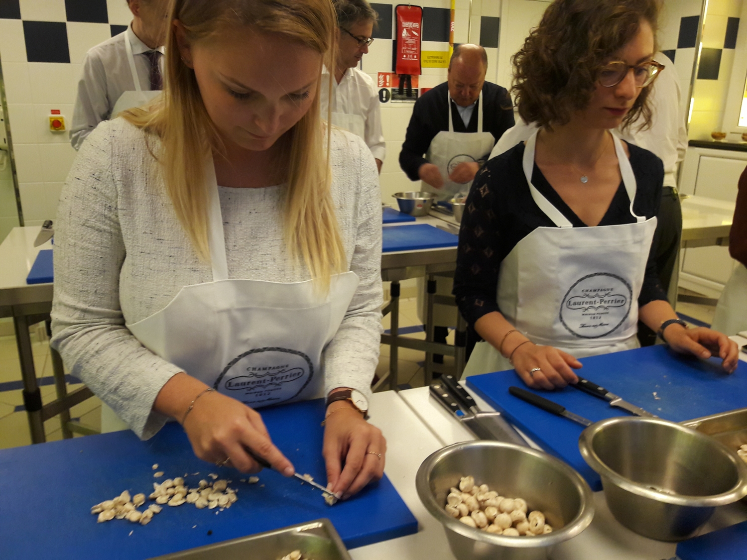 Si elle est souvent (et légitimement) dégustée seule pour son élégance, la cuvée Grand Siècle de Laurent-Perrier sait se décliner à table. Pour le prouver, Laurent-Perrier a invité un petit groupe studieux dans les immenses et prestigieuses cuisines du Ritz.