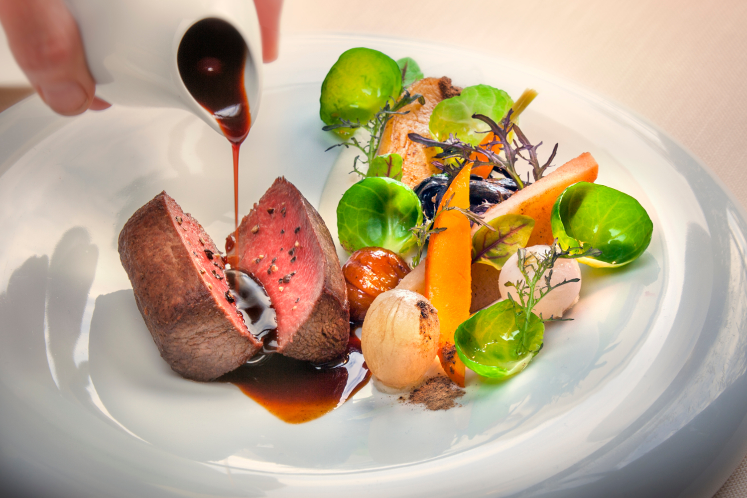 Le Domaine de Clairefontaine, en Isère, est le champion du monde de lièvre à la royale ! Ludovic Nardozza, second de Philippe Girardon, en a conquis le titre. Le chef propriétaire de cette table étoilée réserve au gibier un menu « chasse », qui s’accorde voluptueusement aux grands vins de la vallée du Rhône. Démonstration avec ce dos de chevreuil sauce grand veneur aux airelles, douceur d’automne en sucré-salé !