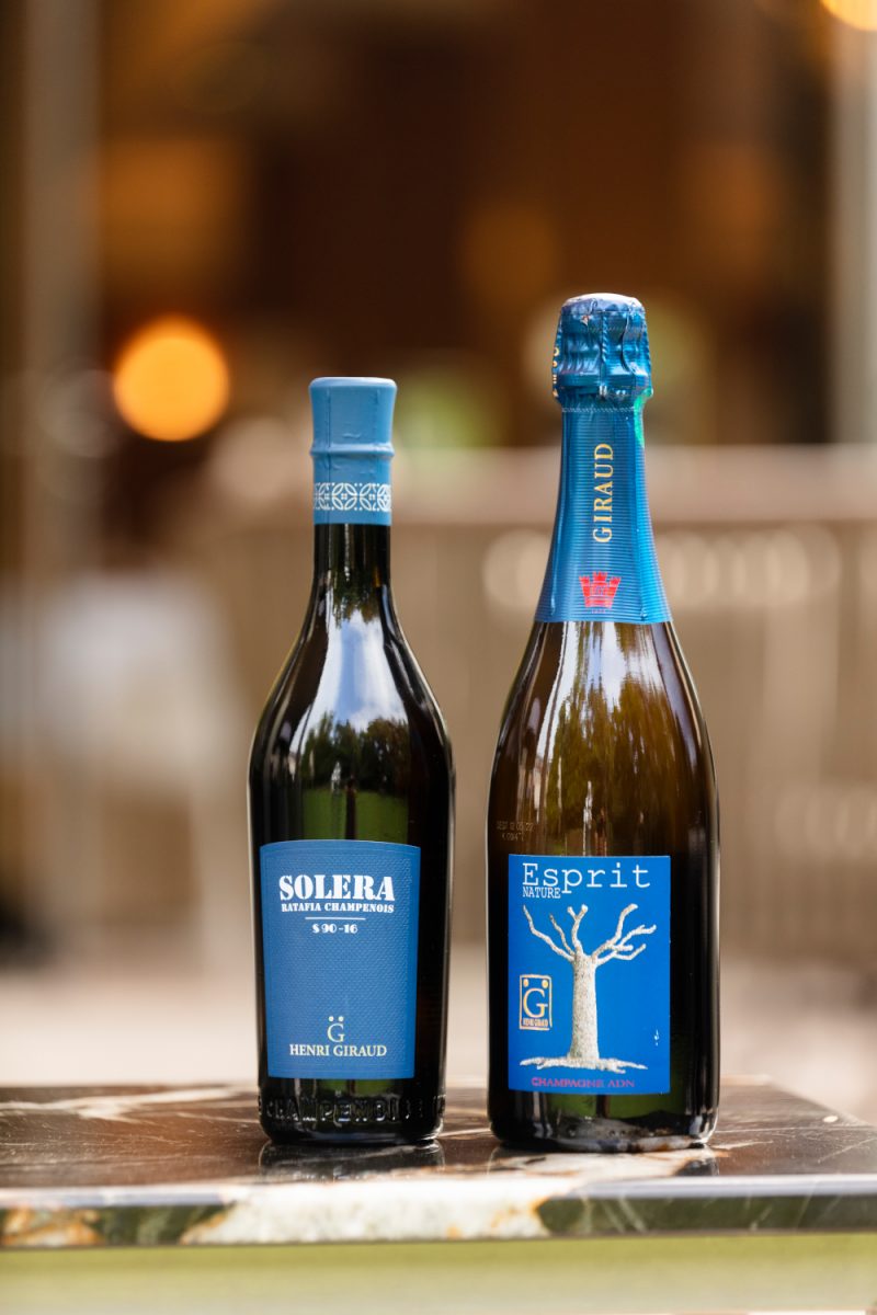 Sur cette gamberoni, Arnaud Lallement a préparé une purée d’agrumes en les brûlant légèrement avant de les confire pour en faire ressortir les amers tandis qu’il récupérait leur acidité en réduisant leur jus. Servie avec le ratafia Solera de Giraud, le vin de liqueur prend un véritable coup de fouet mettant en évidence la vivacité de ses agrumes, alors qu’en dégustant le ratafia seul on était d’abord frappé par ses arômes plus évolués de raisin sec et de noix. Le champagne Brut sans année Esprit Nature de la maison résonne également de manière intéressante grâce à ses arômes un peu exotiques, mais surtout par ses notes de coquille d’huître pilée qui matchent parfaitement avec la chair iodée, délicate et soyeuse de la gamberoni.