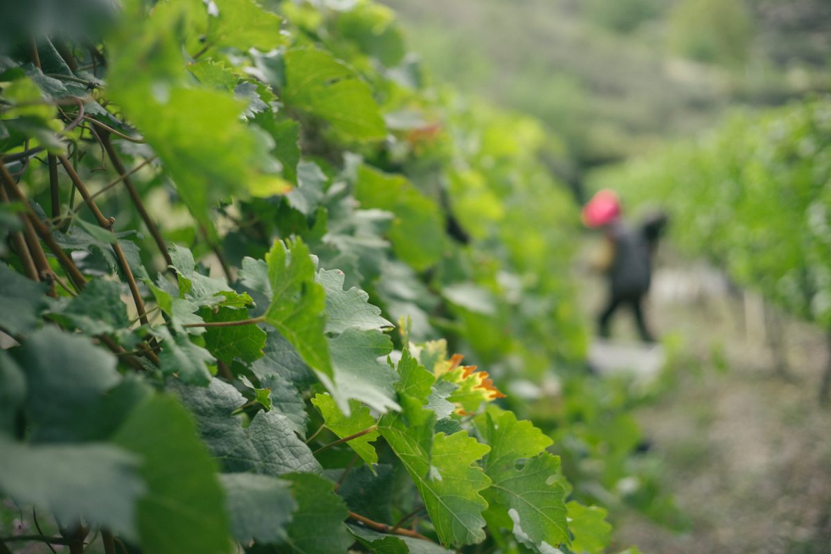 Pour s’établir, LVMH a dû négocier un bail de location de 30 ans avec le gouvernement et avec les 120 familles qui composent les quatre villages. Pour chaque hectare (il y en a trente au total, divisé en 314 parcelles), Ao Yun a conclu un accord de 3500 heures de travail que les villageois réalisent entièrement à la main. Une telle disponibilité de main-d’œuvre ouvre le champ des possibles : “On peut vraiment faire de la manucure. On pratique des vendanges en vert. On ne va pas parler par hectare, mais par pied, voire même par rameau : 1kg par pied, 100 g par rameau”. Comme la zone est très reculée (6 heures de route avant la première ville), les villages doivent fonctionner de manière autonome, d’où le maintien d’un système de polyculture dans lequel Ao Yun s’est efforcé de s’inscrire. « C’est un cercle vertueux, les plantes nourrissent les animaux, les animaux nourrissent les plantes. Nous-mêmes, nous utilisons le compost des villageois, et eux récupèrent les rameaux de vignes rognées pour les donner à leurs animaux.” Cette coupure avec le monde extérieur implique aussi un matériel adapté. “Nous avons des machines faciles à régler et robustes.” Compte tenu de la proximité des habitations, dès le départ, Ao Yun a respecté les pratiques culturales bios, même si le domaine n’entame qu’aujourd’hui les démarches administratives pour obtenir sa certification. Les autorités chinoises ont exigé à cet effet l’installation de caméras dans le vignoble.