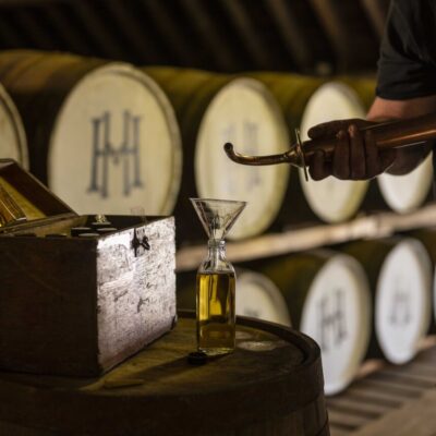 Le choix du cépage est l’ugni-blanc pour les 12 ans d’âge, le 18 comme le 25 ans avec une réduction à 40% pour le plus jeune et de 43% pour les deux autres. L’habillage de cette gamme regarde également vers les trésors de l’Écosse où les codes du single malt exposent les caractéristiques techniques. “La gamme Single Distillery rappelle en effet les codes de single malt avec une approche en compte d’âge (12, 18 et 25 ans)”, souligne Serge Der Sahaguian. C’est le 12 ans d’âge que nous passons au crible avec un premier nez qui nous emmène sur des épices, des fruits confits et de légères notes vanillées. En bouche, ce Single Distillery délivre une attaque intense et suave, les fruits confits reviennent auxquels se joignent des notes florales. Cette eau-de-vie a beaucoup de tempérament avec une longue finale sur des arômes de pêches et d’écorces d’oranges. Ce 12 ans d’âge se contentera d’un filet d’eau ou d’un glaçon, plus encore d’un cigare ou d’un accord singulier avec un dessert comme une crème brûlée.