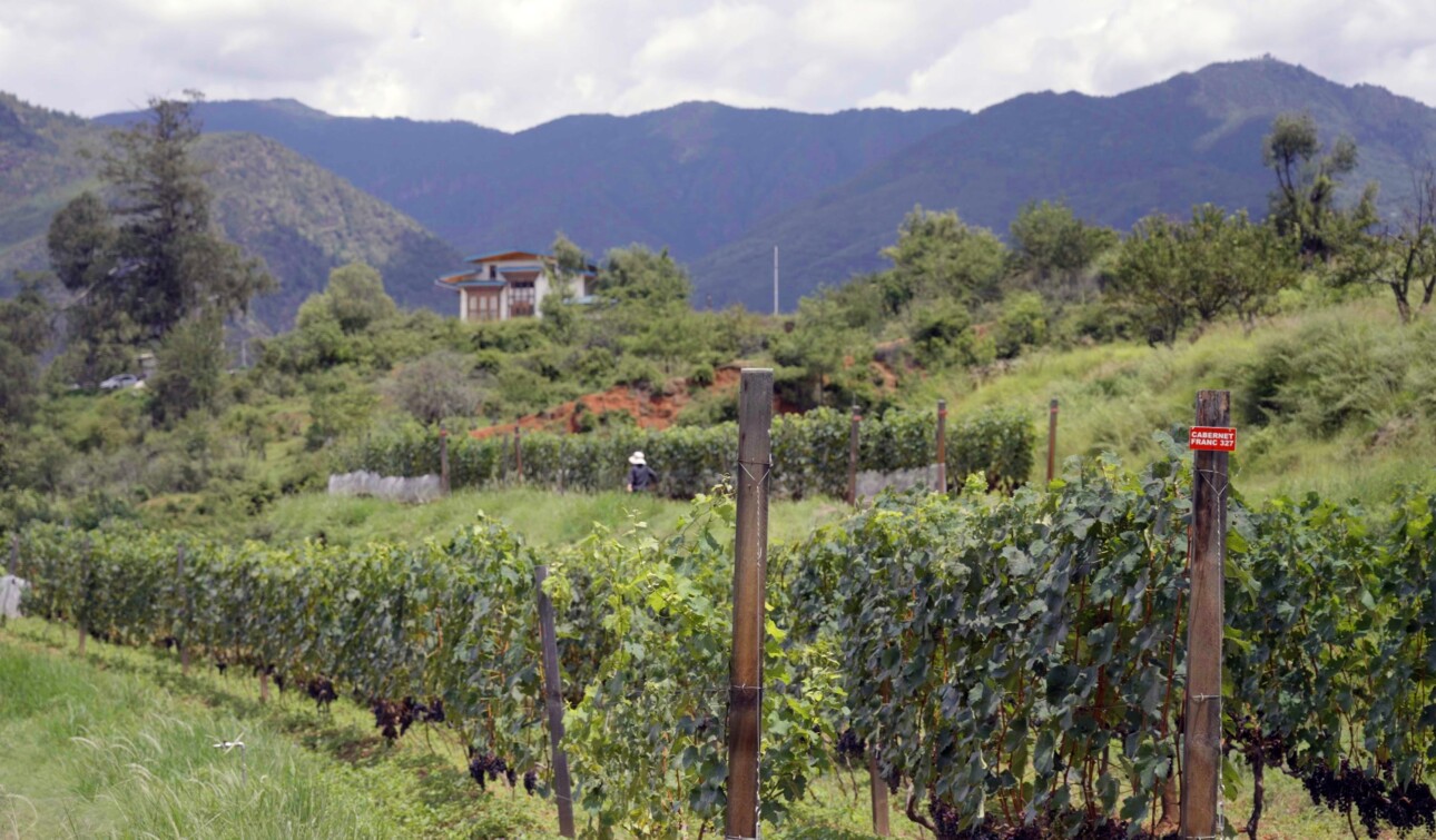 Perdu entre l’Inde et la Chine, le Bhoutan est un tout petit pays de 150 km de long et 300 km de large, mais qui offre tous les types de climats et de sols, grâce à une altitude variant de 150 à 7 000 mètres, mêlant ainsi jungle tropicale et paysage de toundra. Dans cette région où 95 % de la population vit de l’agriculture, jusqu’en 2019, aucune vigne n’avait jamais été plantée. Et pour cause, le caractère enclavé du territoire a tenu les habitants à l’écart de la colonisation romaine, de la route de la soie, comme des missions catholiques.