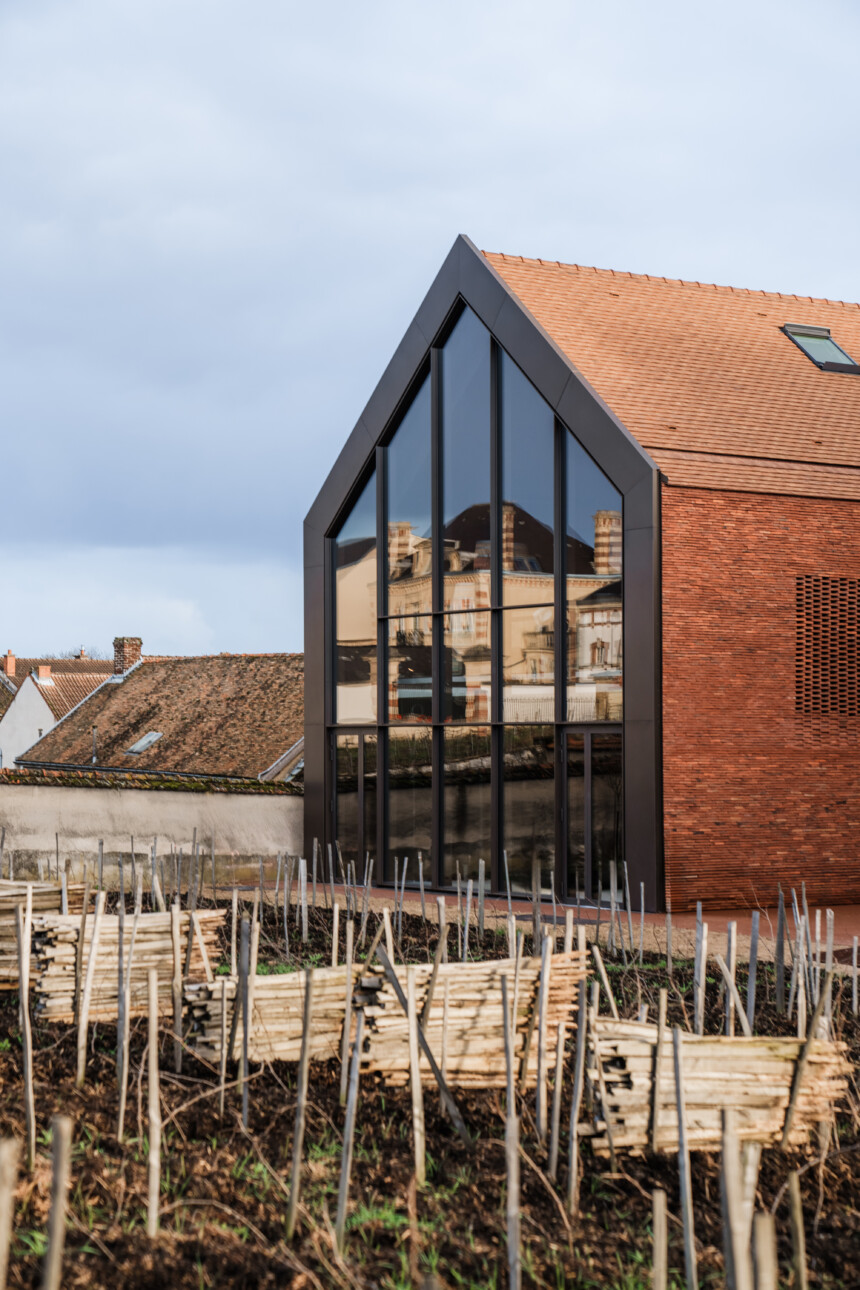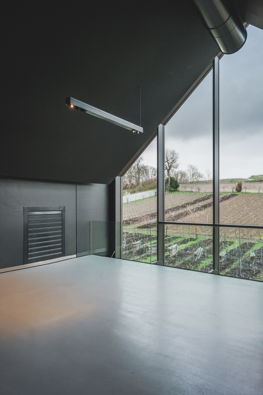 Lorsqu’en 2017 ce projet a été lancé, la question de l’emplacement s’est évidemment posée. Fallait-il suivre la grande tendance des maisons de champagne à délocaliser leurs sites de production à l’extérieur des centres historiques, dans les grandes zones industrielles où les contraintes sont bien moins fortes, transformant les anciennes capitales du champagne en de simples vitrines où ne demeurent que les sièges sociaux et la partie œnotouristique ? Certifiée « Entreprise du patrimoine vivant », la maison Bollinger a cependant voulu demeurer sur son site initial, en prolongeant simplement les trois anciennes nefs qui constituaient le chai de la maison jusqu’à la limite du PLU, au pied des vignes.