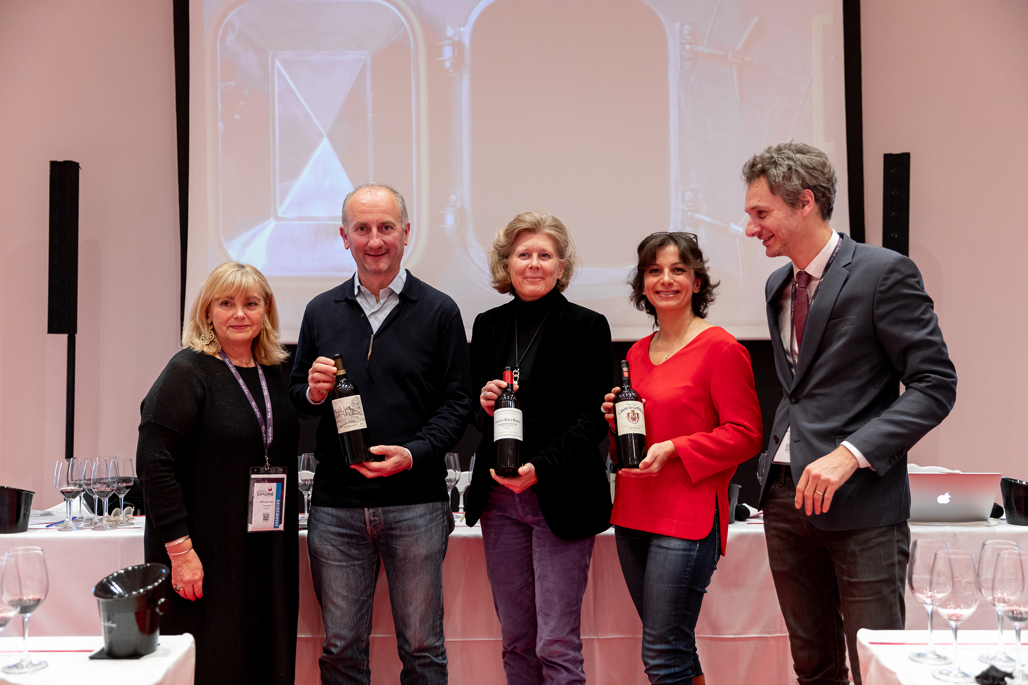 Bordeaux en majesté, sur deux millésimes emblématiques : la deuxième master class (après Riedel) de cette première journée de Bordeaux Tasting mettait à l’honneur trois représentants de l’excellence bordelaise, sur trois appellations différentes. Château Canon La Gaffelière (1er Grand Cru Classé de Saint-Emilion), Château Haut-Bailly (Cru Classé de Graves) et Château Durfort Vivens (2nd Grand Cru Classé 1855, Margaux) se donnaient à déguster en 2015 et 2005, l’occasion de juger, sur un millésime solaire et récent adoubé par la critique, et sur un millésime tout aussi réputé mais déjà plus évolué, ce que de grandes propriétés bordelaises peuvent signer de meilleur – ou presque.
