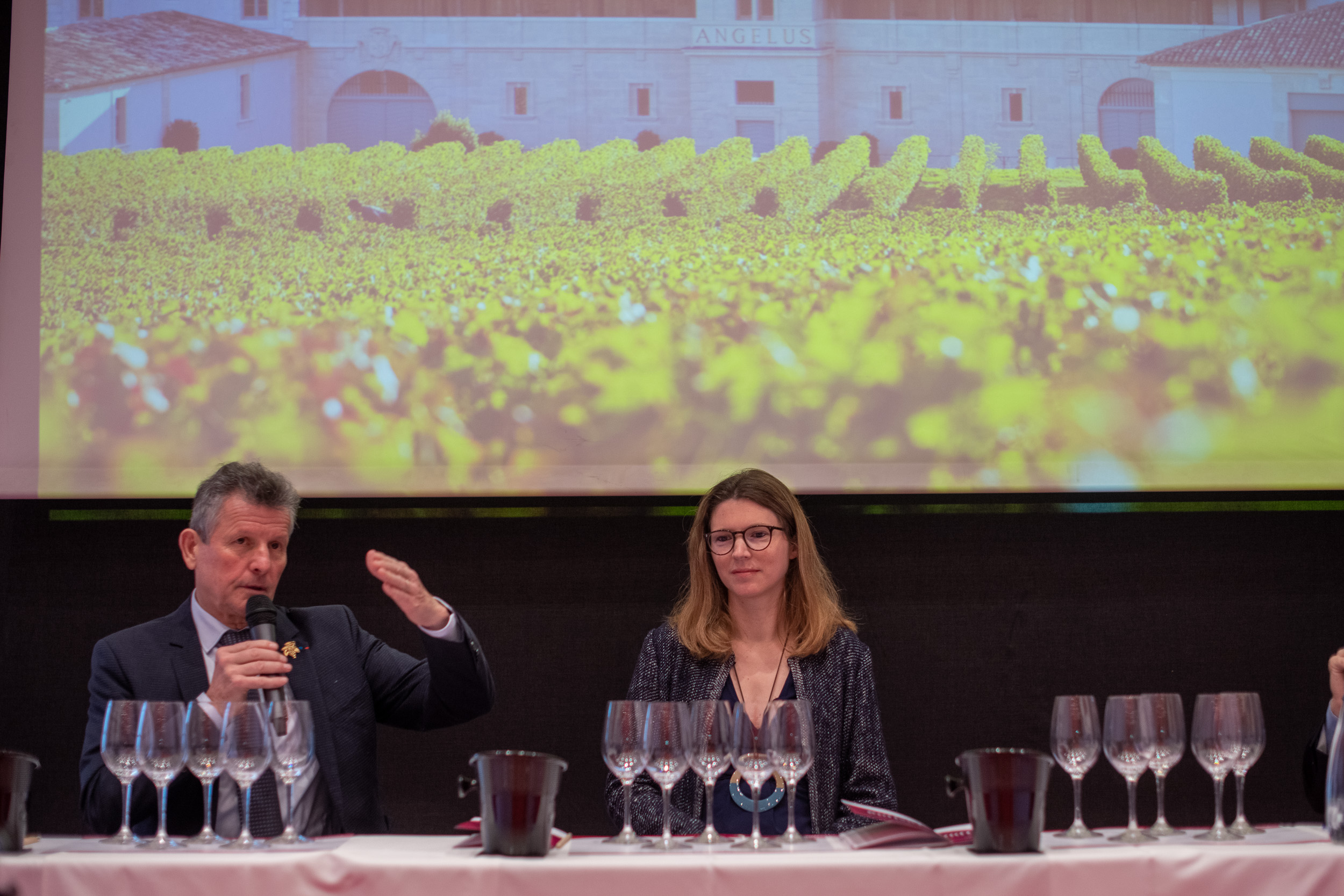 Présentée par le journaliste de Sud Ouest Jefferson Desport, cette master class proposait à la dégustation quatre millésimes en « 6 » ainsi que le millésime 2014 du Carillon d’Angélus, éclairés des précieux commentaires de Stéphanie de Boüard-Rivoal et Serge Dubs, meilleur sommelier du monde 1989.