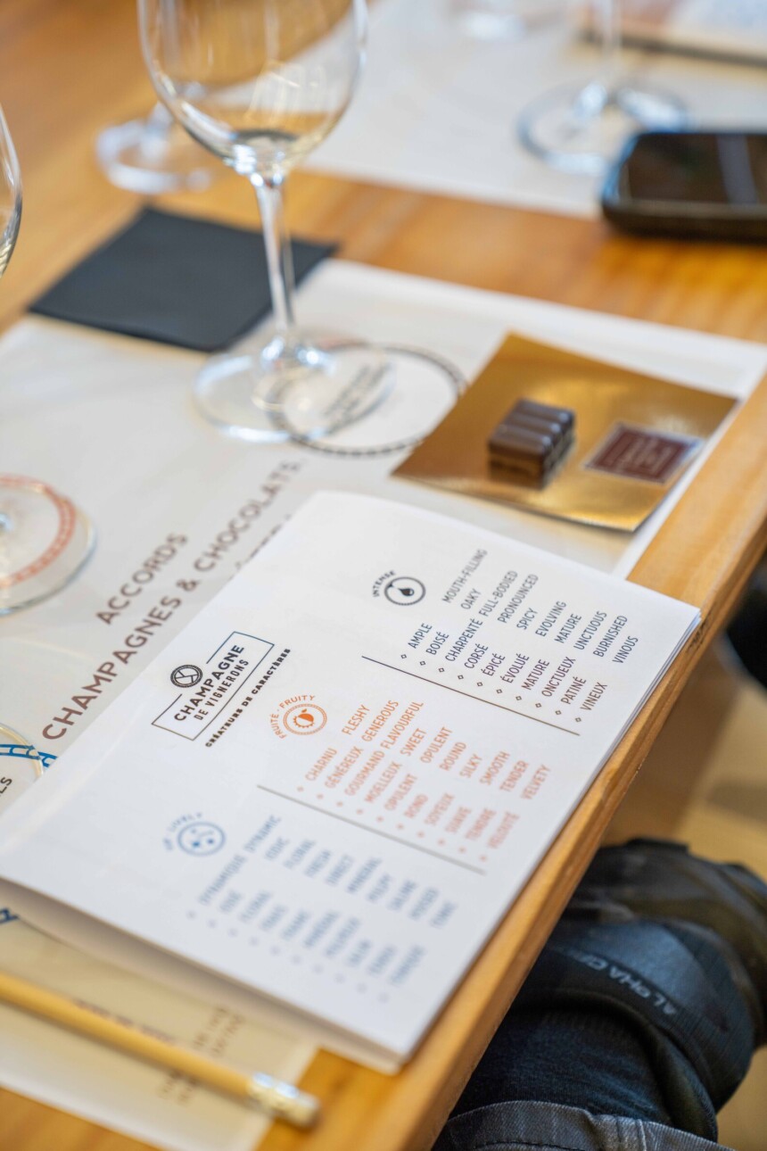 Le Syndicat général des vignerons de la Champagne (SGV) qui fêtera ses 25 ans en 2026 proposait aux visiteurs de Bordeaux Tasting un voyage en trois temps autour du chocolat. L’accord avec le champagne peut surprendre, « certains sommeliers se l'interdisent », explique Geoffrey Orban, grand spécialiste du vignoble des tailleurs de bulles, qui déguste « 2 000 champagnes par an ». Pour réussir cet accord, rien de mieux que de s'appuyer sur les trois caractères vif, fruité et intense, de véritables « clés de lecture pour s'y retrouver parmi tous les champagnes existants », développe Tétiana Augait, responsable de service au SGV. C'est une autre entité champenoise qui a porté cet atelier puisque les chocolats dégustés étaient produits par le maître chocolatier Emmanuel Briet, basé à Épernay.