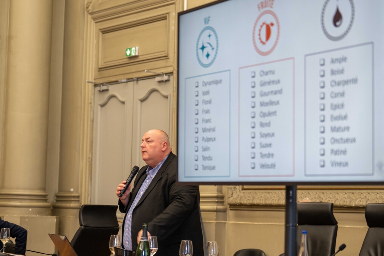 Parmi les ateliers proposés ce week-end à Bordeaux Tasting, celui consacré aux « Caractères » a ouvert le bal avec une plongée dans l’univers des pinots noirs. Dès l’ouverture de l’atelier, l’intention est claire : proposer une lecture du champagne qui parle d’abord au ressenti. « Derrière chaque champagne, il y a un vigneron, et derrière chaque vigneron, un caractère », rappelle Geoffrey Orban, directeur Educavin et consultant terroir. Une manière de poser le décor avant d’entrer dans le vif du sujet : la dégustation des pinots noirs à travers la grille des Caractères. Développé comme un outil d’aide à la compréhension et au choix, ce travail repose sur une segmentation volontairement lisible. Trois grands univers structurent l’approche (vif, fruité, intense) chacun décliné en adjectifs sensoriels. « L’idée n’est pas de simplifier le champagne, mais de le rendre plus accessible dès le premier verre », insiste l’expert. « Quand on est face à plusieurs cuvées, sans repères de marque, il faut pouvoir donner une information claire, immédiate, qui rassure. Verres en main, la théorie se confronte rapidement à la dégustation. Pour illustrer le Caractère Vif, le Blanc de Noirs 2019 de champagne M. Hostomme ouvre la séance. Un champagne tendu, porté par une fraîcheur franche, qui permet d’ancrer immédiatement la notion de dynamisme et de salinité évoquée quelques minutes plus tôt. « Ce sont des vins qui donnent envie d’y revenir, qui appellent le geste suivant », commente Geoffrey Orban. Le registre Fruité s’exprime ensuite avec une cuvée d’Alfred Baulant. Le pinot noir y gagne en rondeur, en chair, avec une expression plus gourmande, sans perdre son équilibre. « On change d’univers, mais on reste dans le même cépage », souligne l’intervenant. « C’est là que l’on mesure à quel point le pinot noir peut déplacer le curseur, simplement par son interprétation. » Enfin, le Caractère Intense trouve son illustration dans le Chassenay d’Arce 2018. La matière se fait plus ample, la structure plus affirmée, presque tactile. « On est sur des champagnes qui occupent l’espace, qui s’installent en bouche », décrit Geoffrey Orban. Une démonstration parlante de cette troisième famille, souvent associée à des vins de gastronomie ou de temps plus longs.