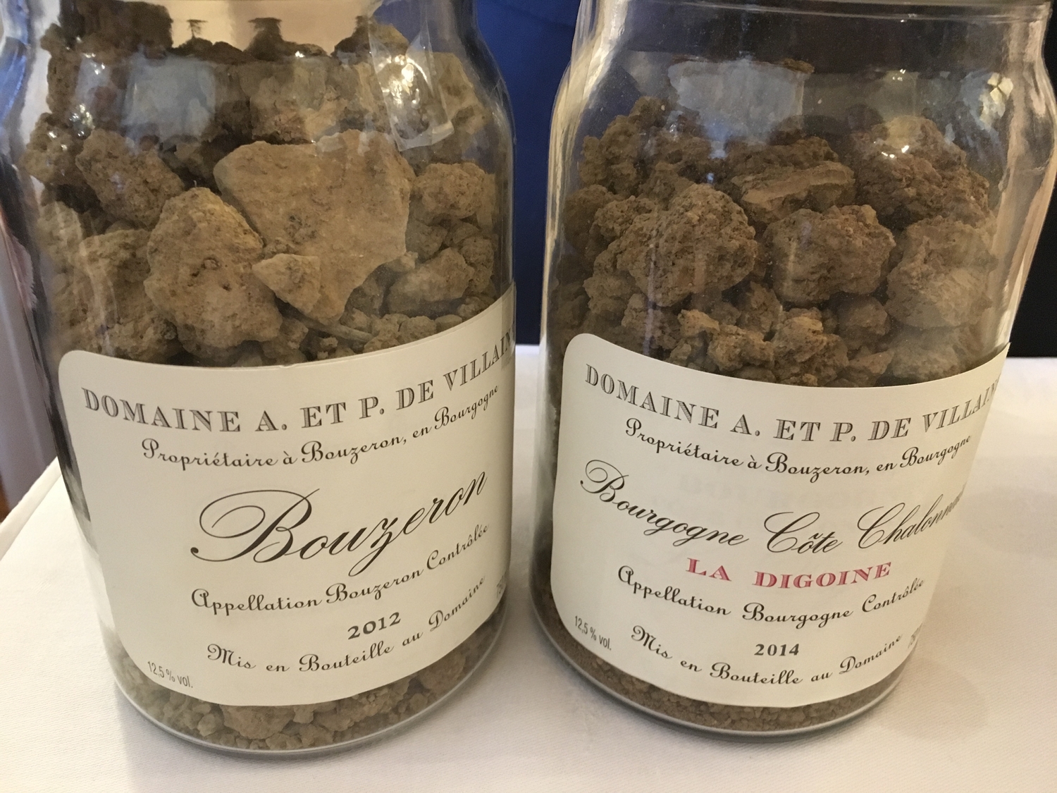La typicité des sols conduit parfois à un encépagement différent, à l’instar du domaine de Villaine à Bouzeron. Les hauts de coteaux composés de sols marno-calcaires sont tout indiqués pour exprimer de la meilleure des manières le cépage aligoté. L’exubérance fruitée dans la jeunesse du vin (c’est le cas du Bouzeron 2016 du domaine – 16€) laisse place sans fard, quelques années plus tard, à la colonne vertébrale du vin imprimée par le terroir. Le Bouzeron 2014 s’avère ainsi particulièrement minéral, tendu, vibrant. Et puis, quelques mètres plus bas à mi-coteau, le sol se fait plus argilo-calcaire et s’unit alors de meilleure manière avec le chardonnay ou le pinot noir. Le Bourgogne Côte chalonnaise blanc les Clous 2016 (16€) livre alors une partition impressionnante avec un milieu de bouche d’une rare expressivité. Le tout avec un potentiel de vieillissement admirable. La même cuvée dégustée sur le millésime 2006 séduit notamment par son extrême fraîcheur qui la ferait passer pour une enfant… Un grand vin, tout comme le Givry rouge 1er cru Clos jus 2016 (19€) du domaine Mouton dont les terres rouges très calcaires sont à l’origine d’un vin profond doté d’une grande matière. Un calcaire légèrement différent de celui du 1er cru les Grands Prétans 2016 (19€) qui offre, de son côté, une expression superbe du pinot noir rappelant les beaux crus de la Côte de Nuits. Le 2016 est un vin séveux, dense, complexe qui convaincra pour sûr tout amateur du potentiel immense de cette Bourgogne plus discrète mais passionnante.