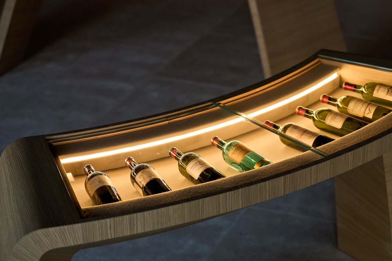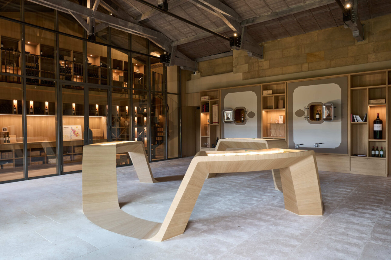 Au centre, des tables vitrines ou de vieilles bouteilles racontent l’histoire du château, de leurs propriétaires et du négoce bordelais. En fond de salle, une galerie haute pour les millésimes de 2001 à 2010. Juste en dessous, ce sera de 2011 à 2020. « Vous avez ici la possibilité d’acheter des grands formats qu’on ne trouve pas forcément dans les marchands classiques comme des impériales ou des double-magnums » précise Véronique Sanders. Pour cette boutique, l’Atelier d’Agencement à Mérignac et James 1840 à Rouen ont apporté une contribution qui fait la synthèse entre l’histoire du lieu et sa nouvelle fonction.