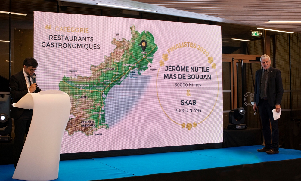 Restaurant Gastronomique : The Marcel, à Sète, remporte le prix pour sa carte lisible et précise, très engagée dans le bio. La table étoilée en 2019, avec le chef Fabien Fage est dirigée par Didier Malraux, également sommelier : “Nous tenons à rendre les vins accueillants, à les faire déguster”.