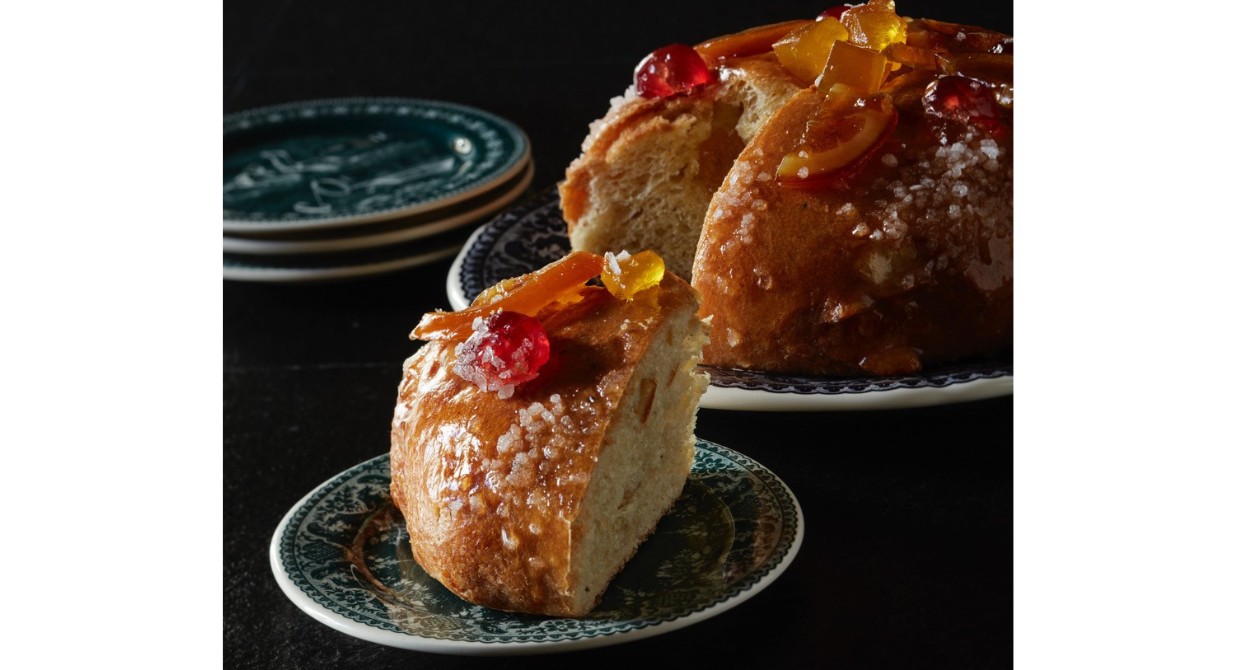 En Provence, pour l'Épiphanie, on croque dans un gâteau des rois. Cette brioche ronde parfumée à la fleur d’oranger est constellée de fruits confits qui symbolisent les pierres précieuses offertes par les Rois mages. Le célèbre pâtissier et confiseur carpentrassien Pierre Jouveau nous livre sa recette presque traditionnelle. Pour l’actualiser, nous avons associé cette gourmandise ancestrale à trois cuvées provençales de vins effervescents. Dégustation.