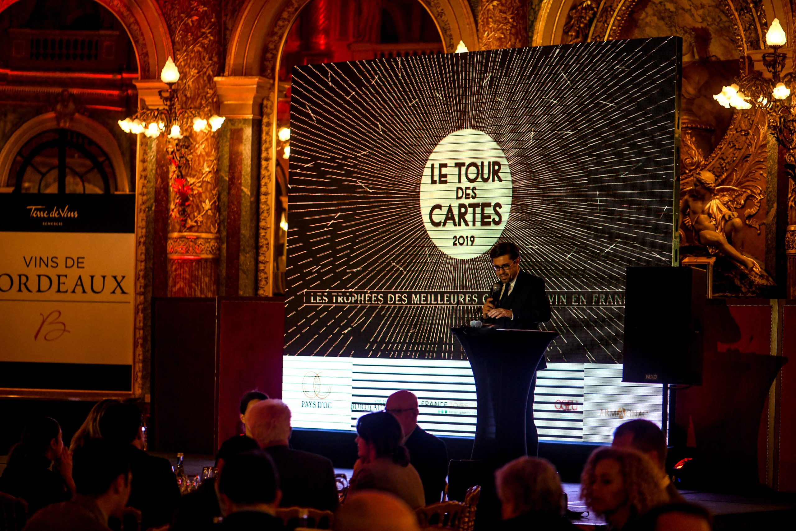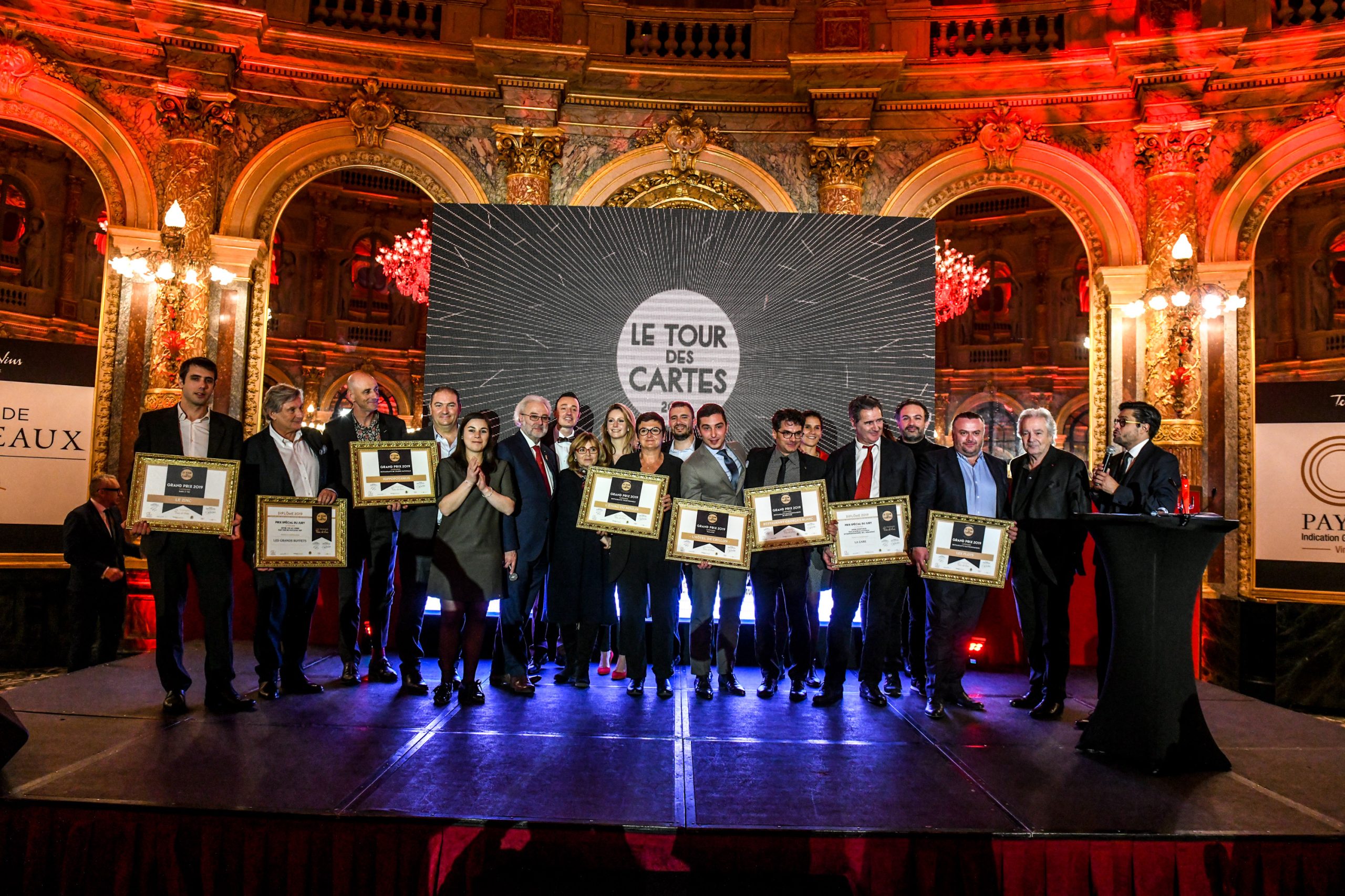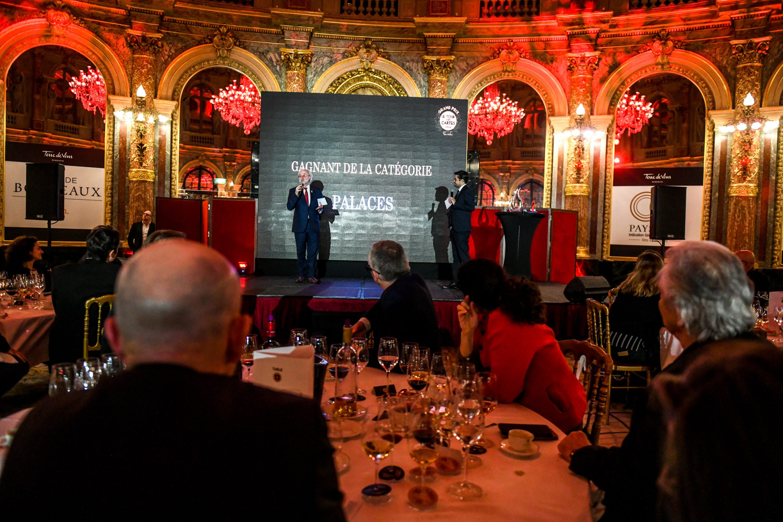 C’est dans la sublime salle de bal de l’Intercontinental Paris le Grand, classée monument historique, que Terre de Vins a remis hier soir les 10 prix du concours du Tour des Cartes. Pour cette 3ème édition, et comme le rappelait son président Philippe Faure-Brac, ce sont près de 8000 cartes des vins qui ont été décortiquées et analysées avec, à la clé, l’identification du top 100 des meilleures cartes de vins toutes catégories confondues (voir ici la liste complète des finalistes). Parmi eux, c’est l’élite de l’élite qui a été primée hier. Un choix souvent très difficile tant la qualité des sélections de vins ou de spiritueux dans ces établissements atteint un très haut niveau qualitatif.