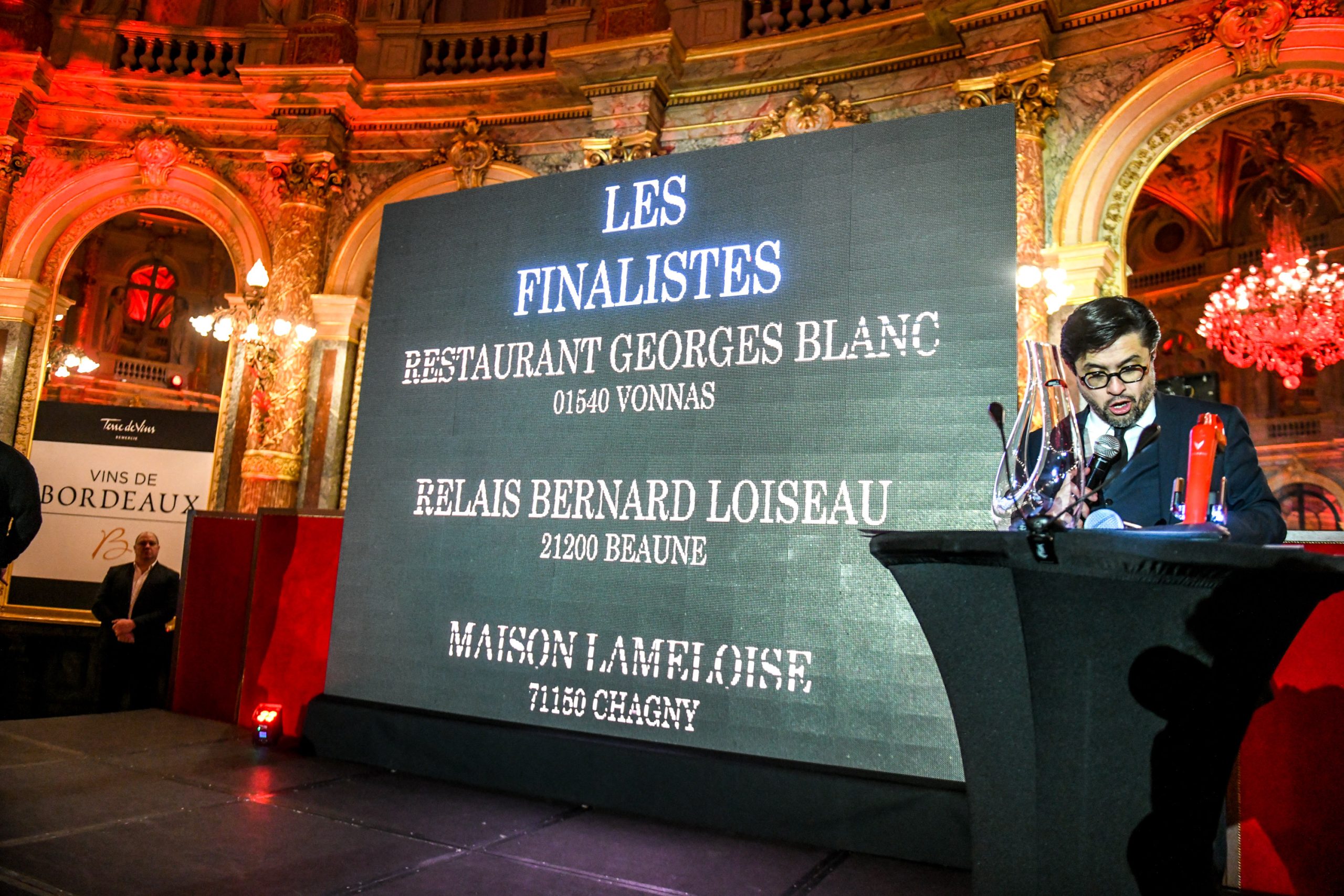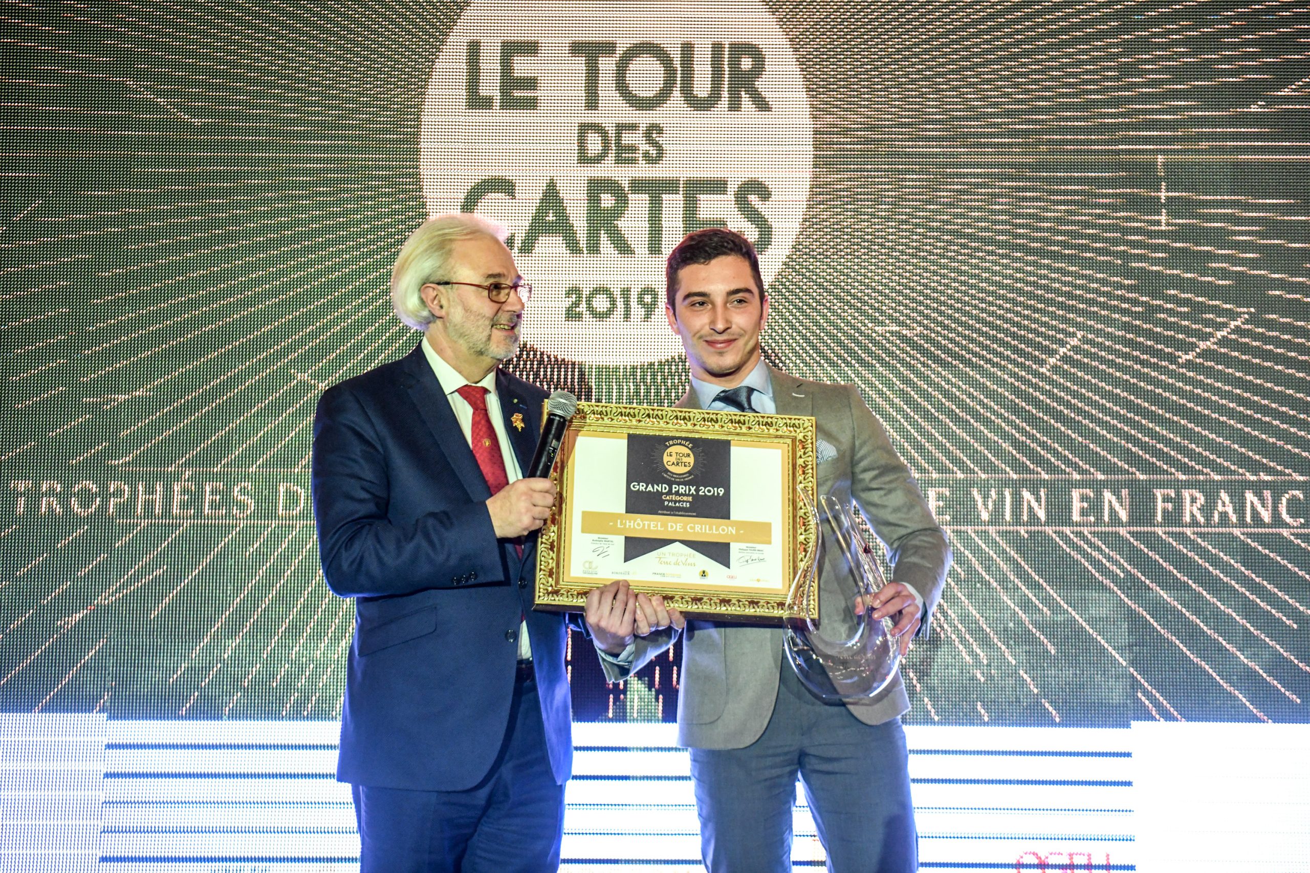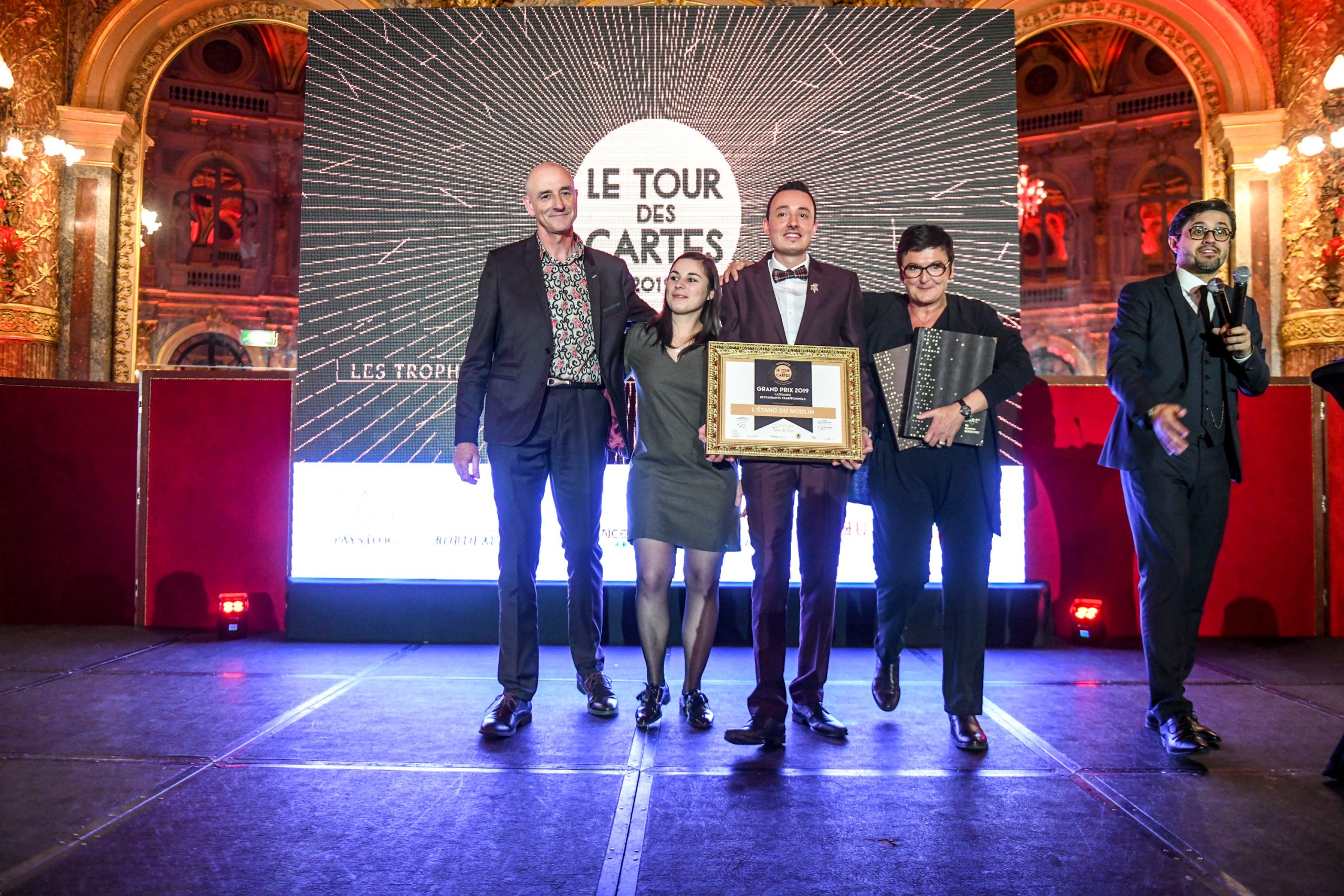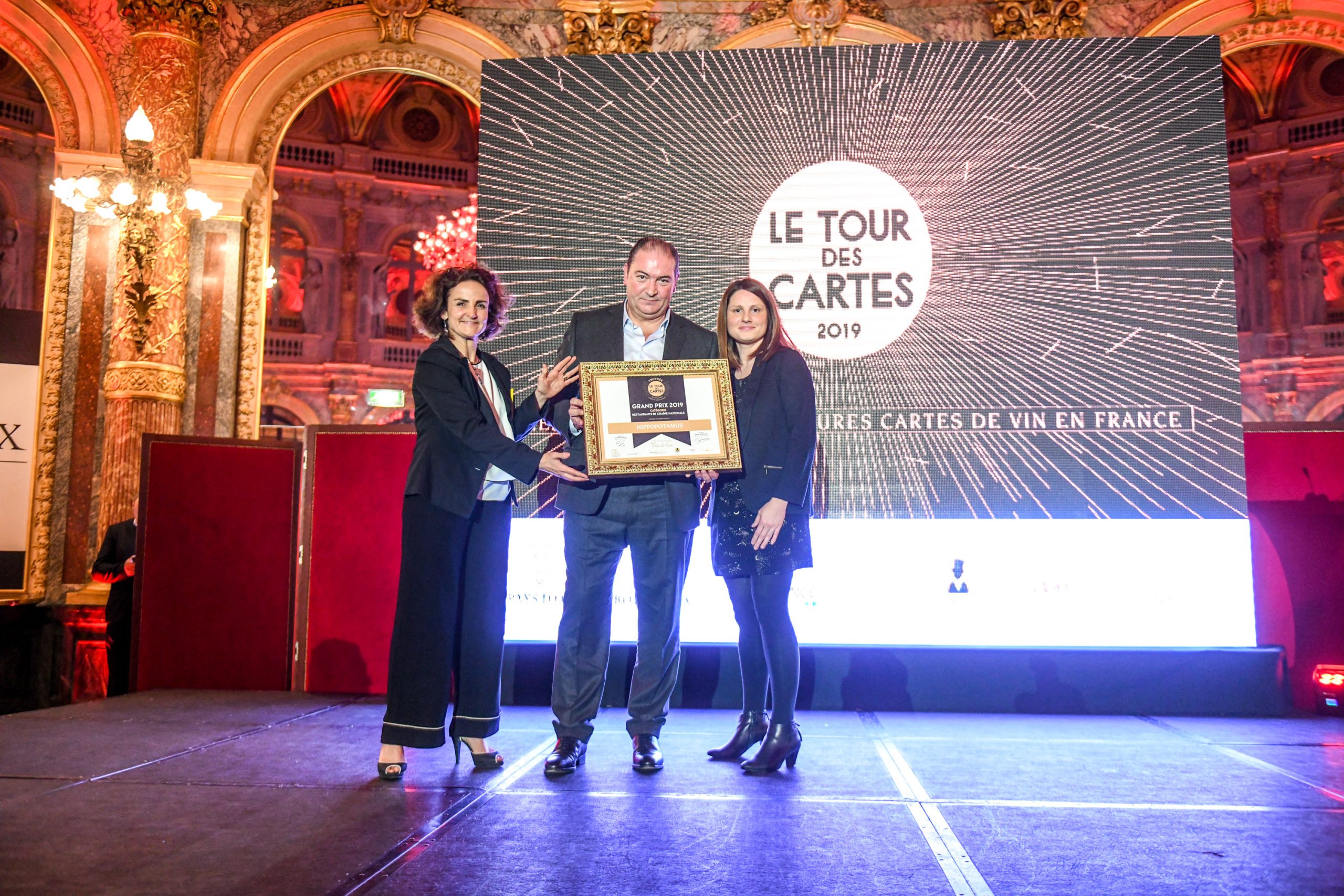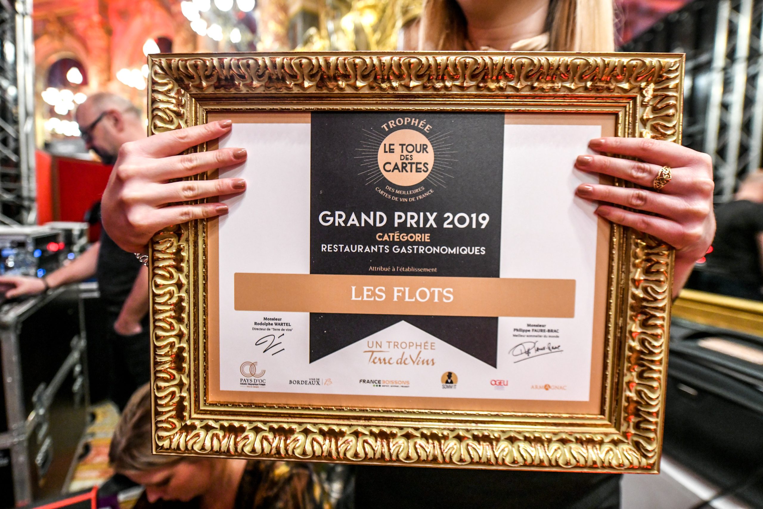 Les restaurants de chaîne n’ont pas été oubliés et c’est Hippopotamus qui a été honoré pour le travail de fond engagé depuis le rachat de l’enseigne par le groupe Bertrand il y a 2 ans. Une carte courte de 21 références mais offrant de beaux rapports qualité-prix aux consommateurs. L’assemblée a ensuite été conquise par le très beau discours de Sandrine Boissenin, sommelière du restaurant « L’Étang du Moulin » à Bonnétage dans le Doubs. Gagnante du prix dans la catégorie « restaurants traditionnels », c’est accompagnée de deux de ses jeunes collaborateurs qu’elle est montée sur scène avant de faire un discours touchant sur l’importance de la transmission. La haute gastronomie a brillé également hier avec la récompense du restaurant « Les Flots » de Grégory Coutanceau à La Rochelle (catégorie “restaurants gastronomiques”) et le restaurant « Georges Blanc » à Vonnas, institution récompensée dans la catégorie « restaurants gastronomiques de prestige » qui fêtera bientôt ses 150 ans. Point d’orgue de cette très belle soirée, l’annonce du vainqueur dans la catégorie « Palaces ». Et pour sa première participation au concours, c’est l’Hôtel de Crillon qui a été désigné pour l’exceptionnelle qualité de sa carte des vins construite ex nihilo par Xavier Thuizat. Félicitations à tous !