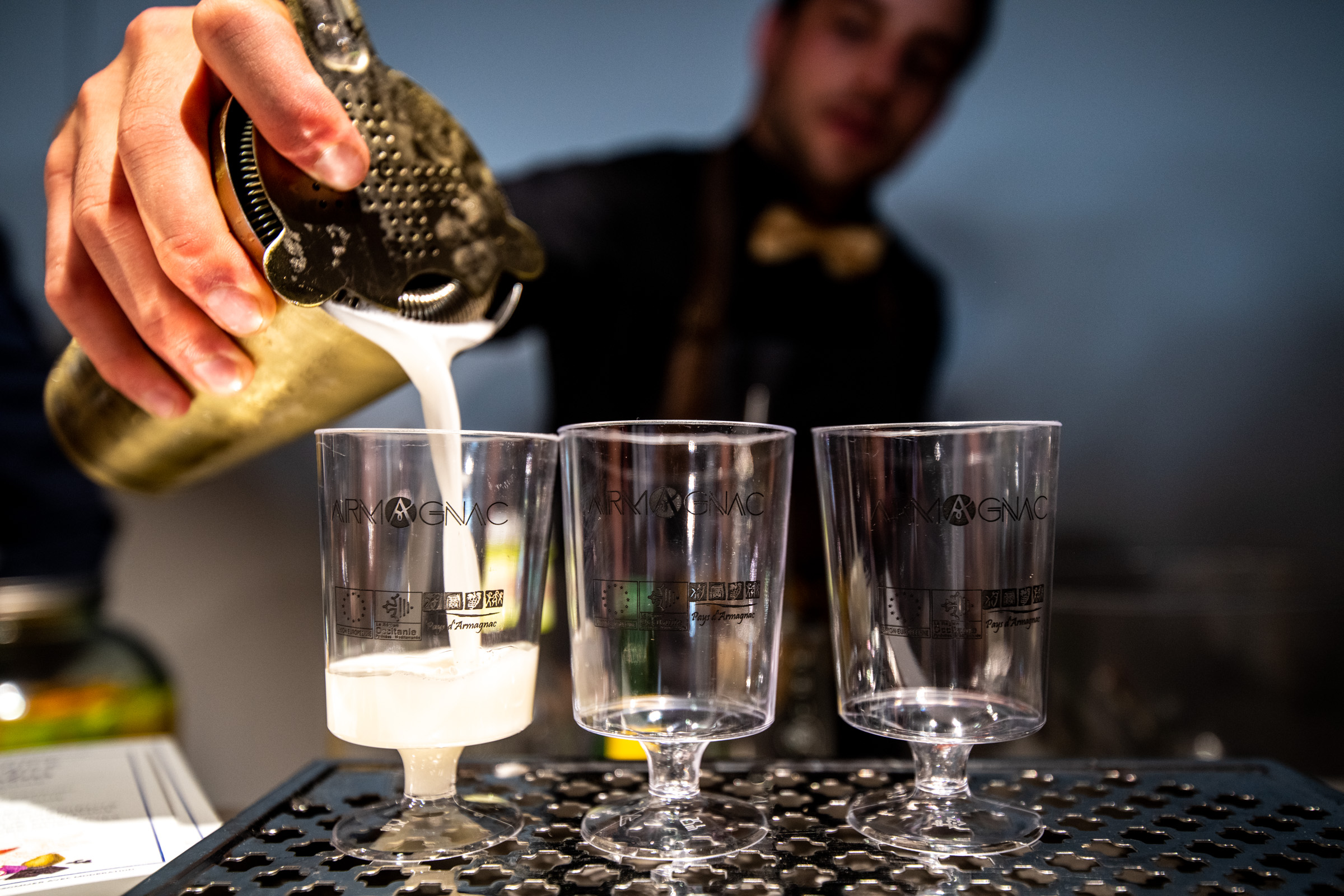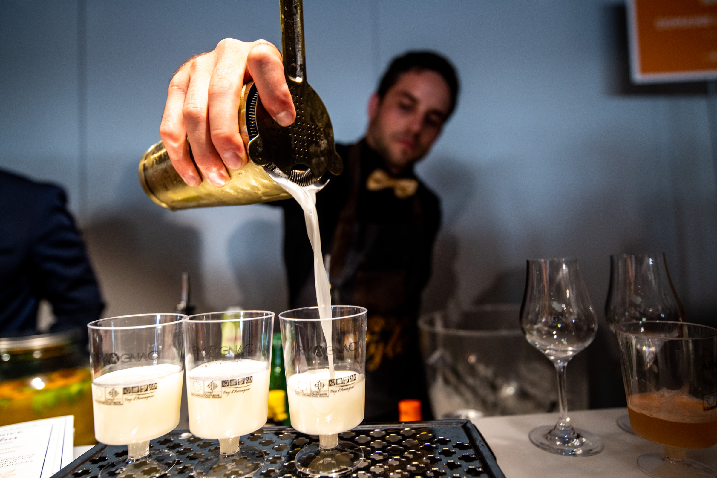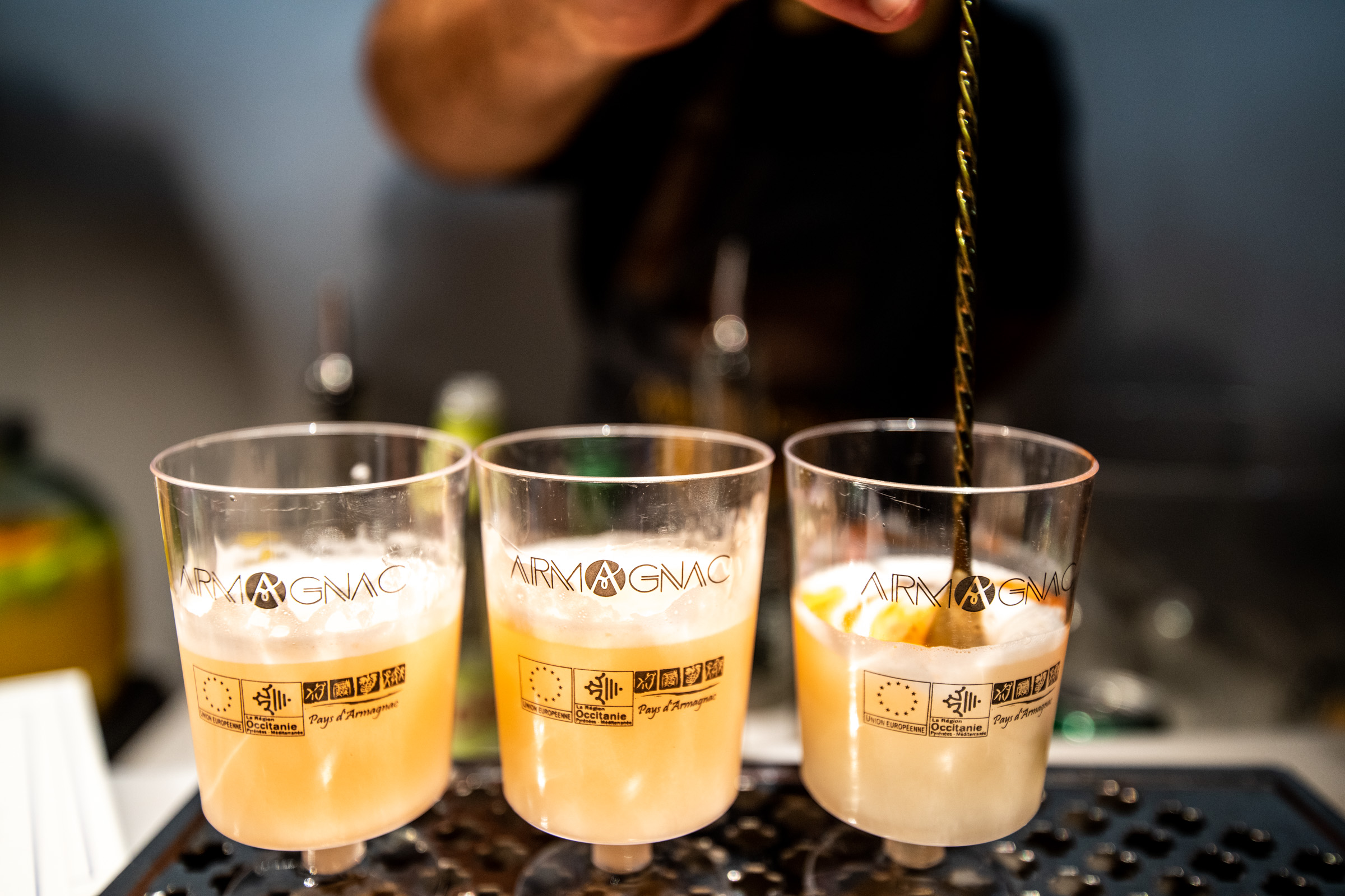 Mais bien sûr, il n’y avait pas que des cocktails à déguster hier. Les amateurs pouvaient savourer toutes les palettes d’arômes des deux eaux-de-vie, des plus jeunes aux plus évoluées. De grandes maisons étaient présentes pour faire découvrir leur gamme : Courvoisier et Rémy Martin pour le cognac, et pour l’armagnac, Tariquet et Darroze. Marc Darroze, par ailleurs président du BNIA, était ravi de faire goûter ses armagnacs aux jeunes amateurs, d’expliquer quelques secrets de fabrication et de vanter les accords possibles – avec du fromage, par exemple. Une expérience particulièrement probante sur des millésimés comme 2001, 1996, 1987, 1981 et, comble du “Luxe Gascon”, un 1946 de grande classe. Les jolis armagnacs du Château Garreau (29 hectares à Labastide d’Armagnac) et du Domaine Laguille (65 hectares près d’Eauze) confirment que les pépites sont aussi à dénicher auprès de maisons moins connues et qui travaillent obstinément à exprimer le meilleur de leur eau-de-vie gasconne.