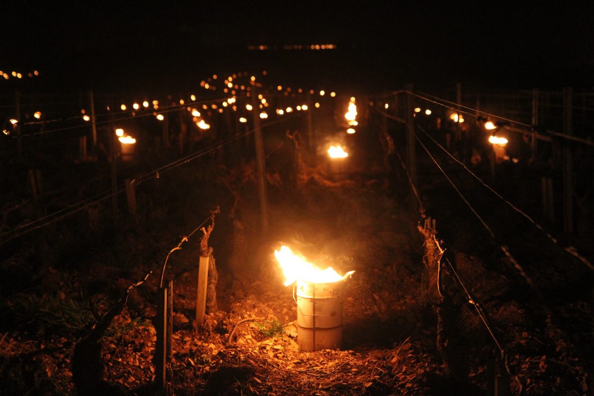 Les températures sont descendues en-dessous de zéro dans toute la Bourgogne viticole : jusqu’à -3° en Côte de Beaune au petit matin, -5° dans le Chablisien. Contrairement à la nuit précédente, les vignerons se devaient de réagir. Plus précisément ceux propriétaires des parcelles les plus prestigieuses. À plus de 4000€ l’hectare par jour de lutte, le système de protection par bougies n’est réservé qu’aux vins de renom. Ainsi, le Montrachet, Meursault, Chablis et Fuissé ont vécu la nuit au rythme des chalumeaux. D’autres moyens de lutte, comme les éoliennes et l’aspersion, ont été déployés.