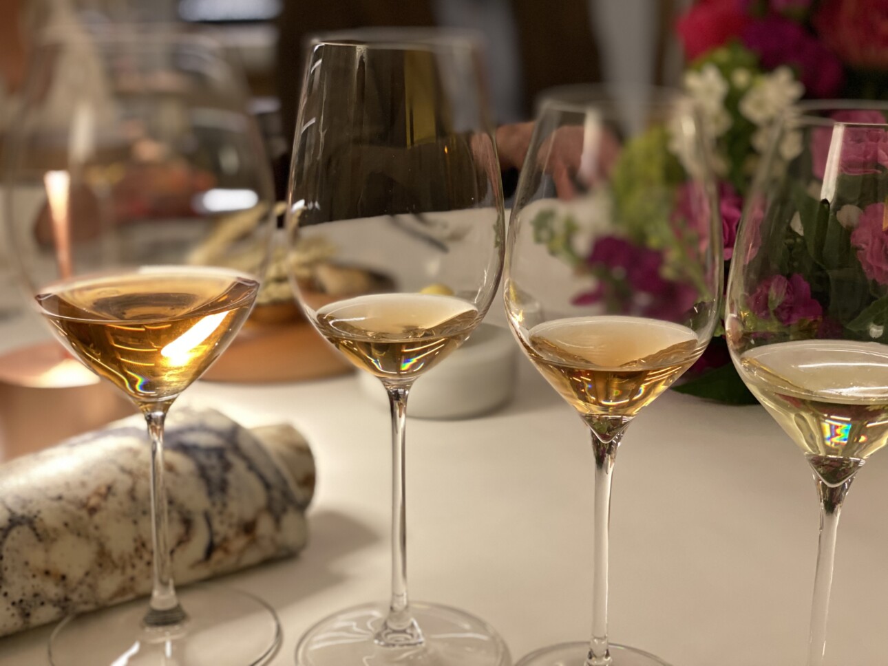 Dans le verre, sa robe est cuivrée, vibrante, et présente de beaux reflets dorés. Le nez est élégant, la partition des arômes s’étend de la figue fraîche aux fruits jaunes mûrs. En bouche, les amers se révèlent avec des notes d’orange sanguine, de pamplemousse, et une pointe de gingembre. Ampleur et tension marchent main dans la main. La finale est longue, légèrement amère, qui tient le vin en équilibre parfait.
