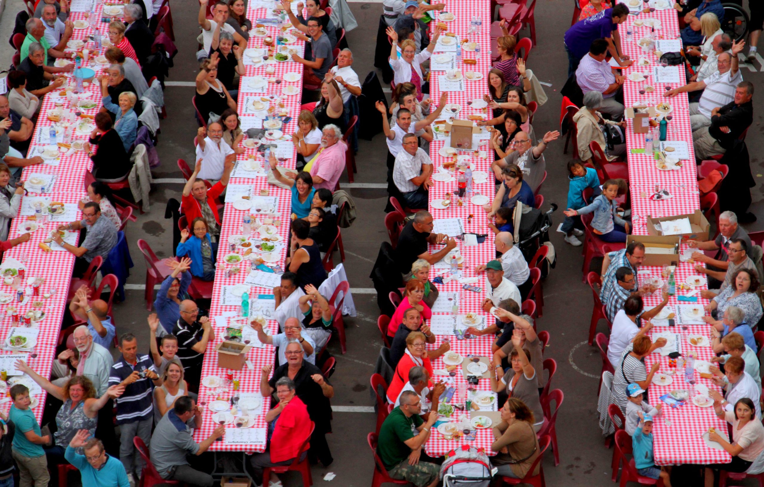 La ville se transforme ainsi, deux soirs de suite, en gigantesque restaurant à ciel ouvert. L’ambiance est placée sous le signe de la convivialité… et du bazar organisé. Impossible de réserver une place (mais il est recommandé d’acheter son billet à l’avance), et pas de service à table. « Tout le monde est logé à la même enseigne, et c’est parfois par l’entraide que se nouent les amitiés d’un soir », explique Olivier Guillement, l’un des 200 bénévoles qui œuvrent en coulisses pour cette soirée de folie.
