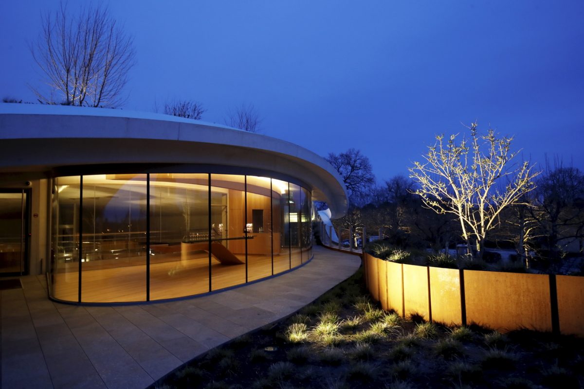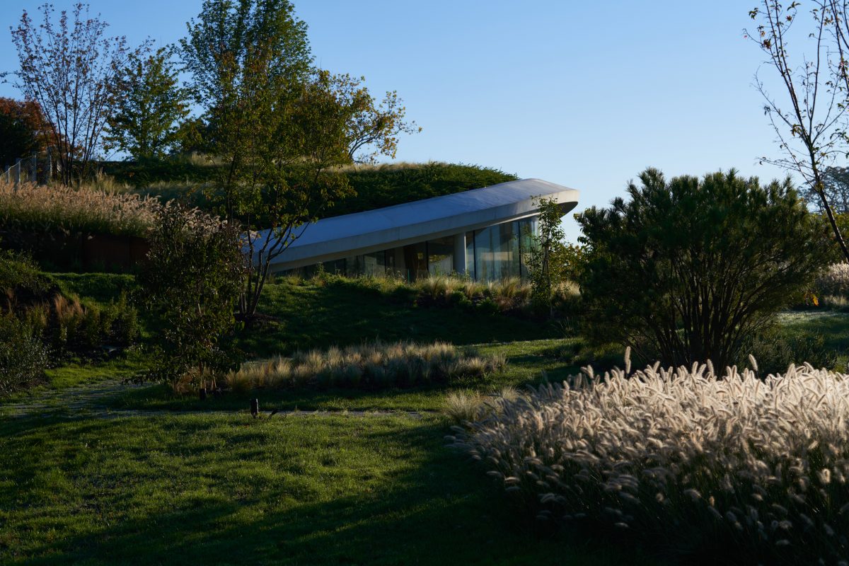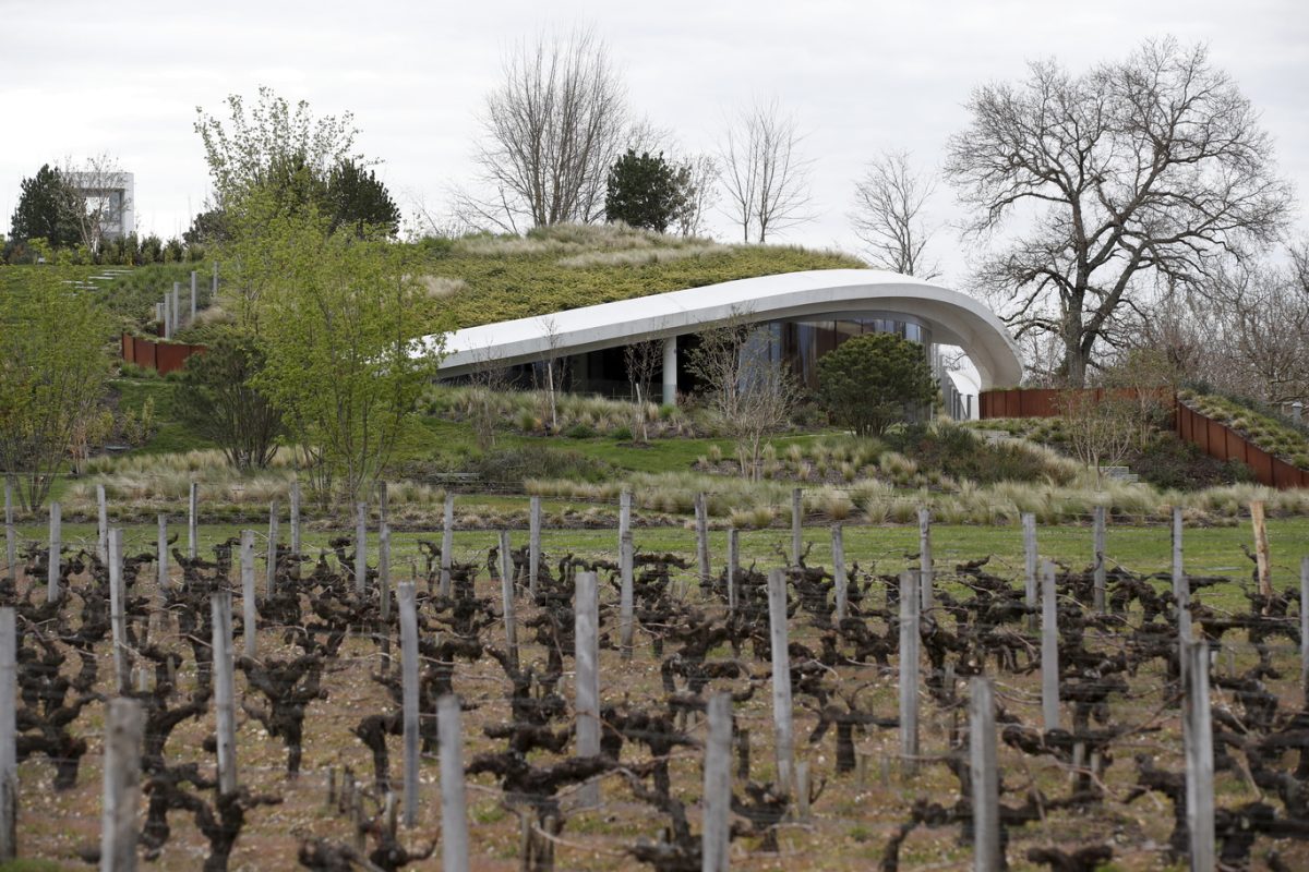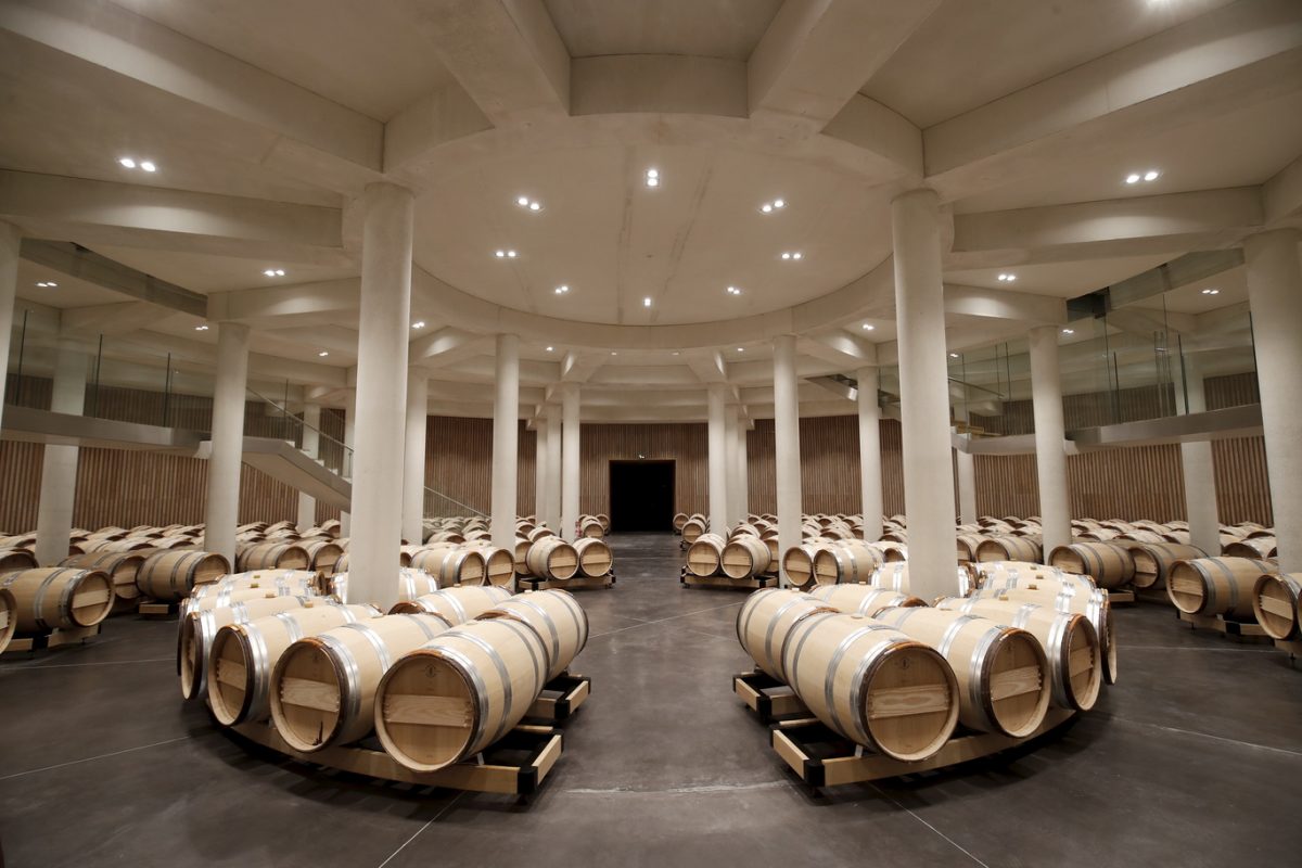 En approchant de Haut-Bailly, quelques lignes blanches épurées se dessinent entre les vignes, épousant la courbe de la butte qui jouxte le château. Des espaces vitrés se laissent deviner entre les arbres et les arbustes, mais guère davantage. Si l’on ignorait que se sont déroulés ici plus de deux ans et demi de travaux intensifs, on jurerait que rien n’a changé. La prouesse est de taille : le nouveau chai du cru classé de Graves (historiquement “cru exceptionnel” comme l’arbore la façade) s’intègre élégamment dans le paysage, avec son toit végétalisé et sa conception audacieuse qui nous entraîne à 10 mètres de profondeur – et 8 mètres au-dessus du sol, soit au niveau du premier étage du château.
