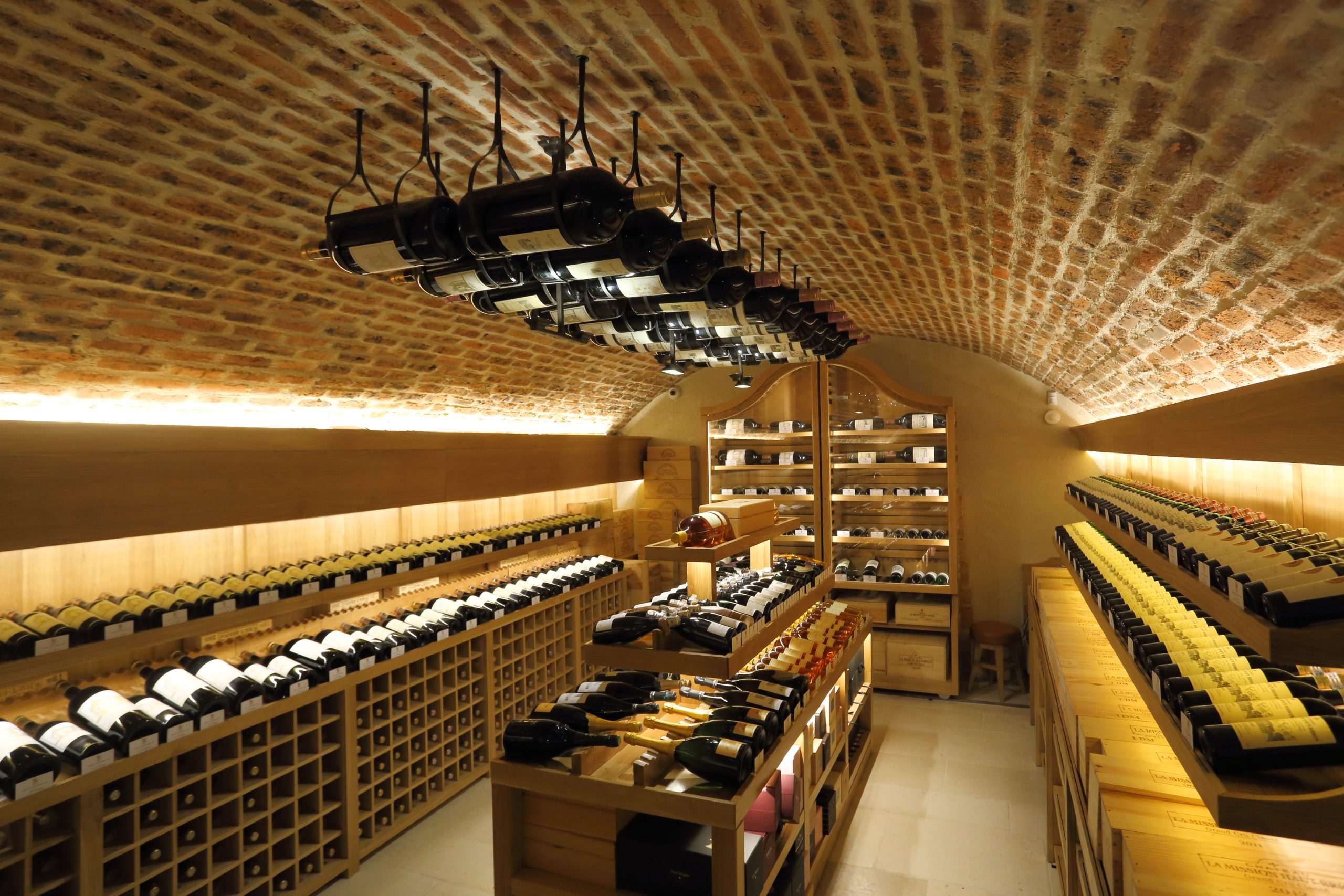 Le trésor se situe pour sa part au sous-sol, gardé par un dragon de bronze, réplique de celui de Saint-Emilion et accessoirement second vin du château Quintus. Le paradis se fait ici vertical. Haut-Brion et la Mission Haut-Brion se déclinent sur plusieurs dizaines de millésimes, tant en blanc (1977 à 2013) qu’en rouge (respectivement 1961 et 1967 à 2013). On en oublierait presque la sélection d’Yquem et de grands champagnes (Krug Clos du Mesnil, Selosse, Dom Perignon P2 etc.). Dès janvier, la cave s’ouvrira aux autres régions françaises avec de très bons domaines et deviendra, à n’en pas douter, un incontournable parisien. Tout comme le restaurant dont les heureux clients, et seulement eux, pourront profiter d’un bar pour terminer pourquoi pas leur repas, comme à Haut-Brion, avec un verre de cognac Tesseron.