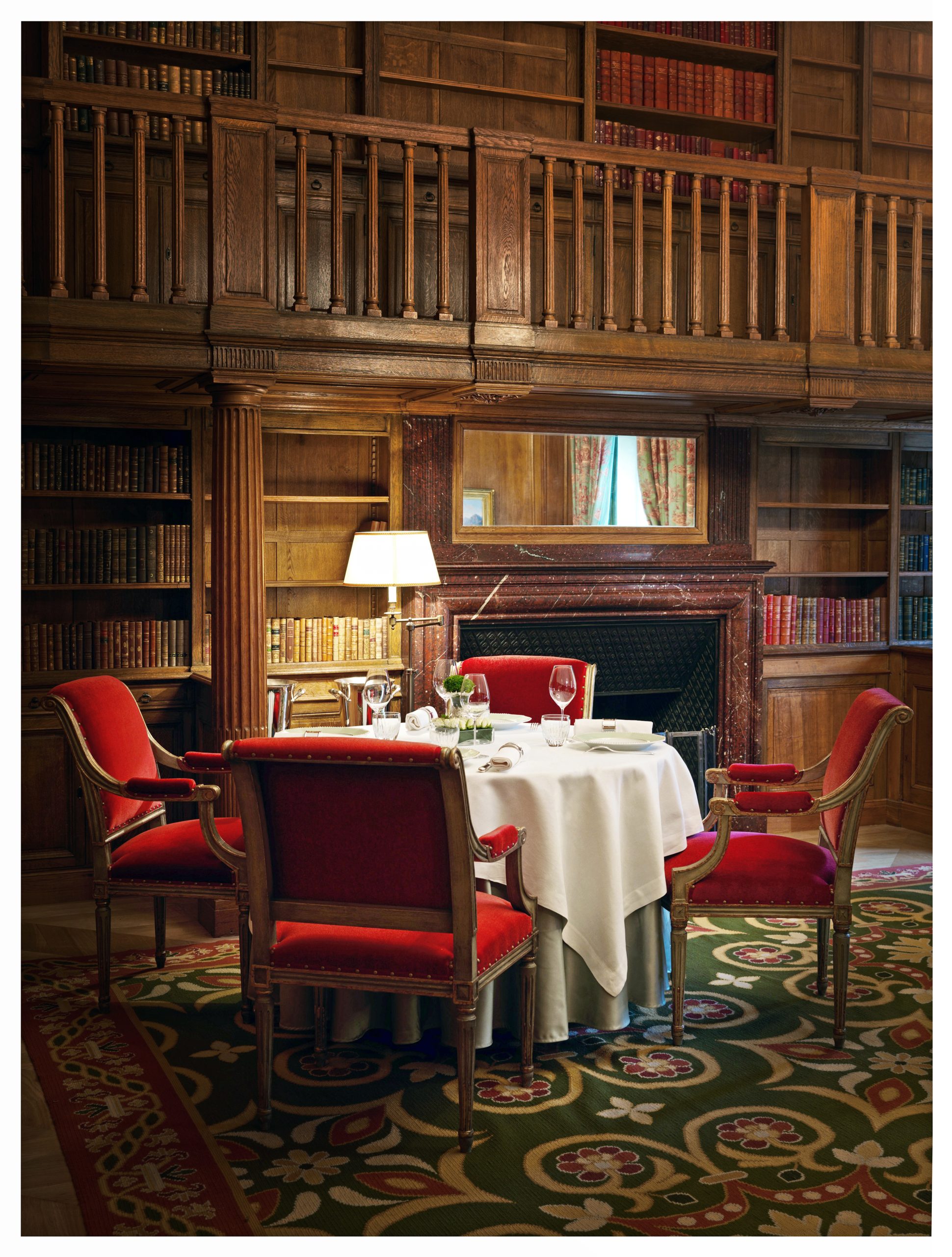 A l’image d’un Bernard Magrez qui imaginait il y a quelques mois sa Grande Maison à Bordeaux, l’hôtel Dillon est un lieu hybride. D’hébergement il ne sera point ici question, sauf pour les bureaux du groupe qui y seront transférés en décembre prochain. Mais une cave, un restaurant gastronomique ainsi que des salons et un bar très élégants. Passé le voiturier qui guette sur le perron, l’on découvre la cave, parée de boiseries de noyer, au luxe feutré et apaisant. A l’image du bow-window donnant sur la cour intérieure ou du salon-librairie dont la sélection a été réalisée par la très pointue librairie gourmande dans le Marais. En vis-à-vis de la cave, l’accueil du restaurant n’est qu’une antichambre, prémisse à la découverte d’un futur temple de la gastronomie au confort tout aussi intime, sis au premier étage.