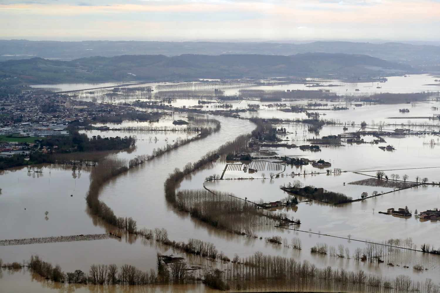 En Sud-Gironde, le vignoble bordelais jouxtant la Garonne s’est en partie retrouvé submergé, les pieds de vigne dans l’eau. Parmi les appellations touchées : l’Entre-deux-Mers, les Graves, Sauternes, Barsac, Cérons et les vignobles sur les rives du fleuve autour de Cadillac, La Réole et Langon.