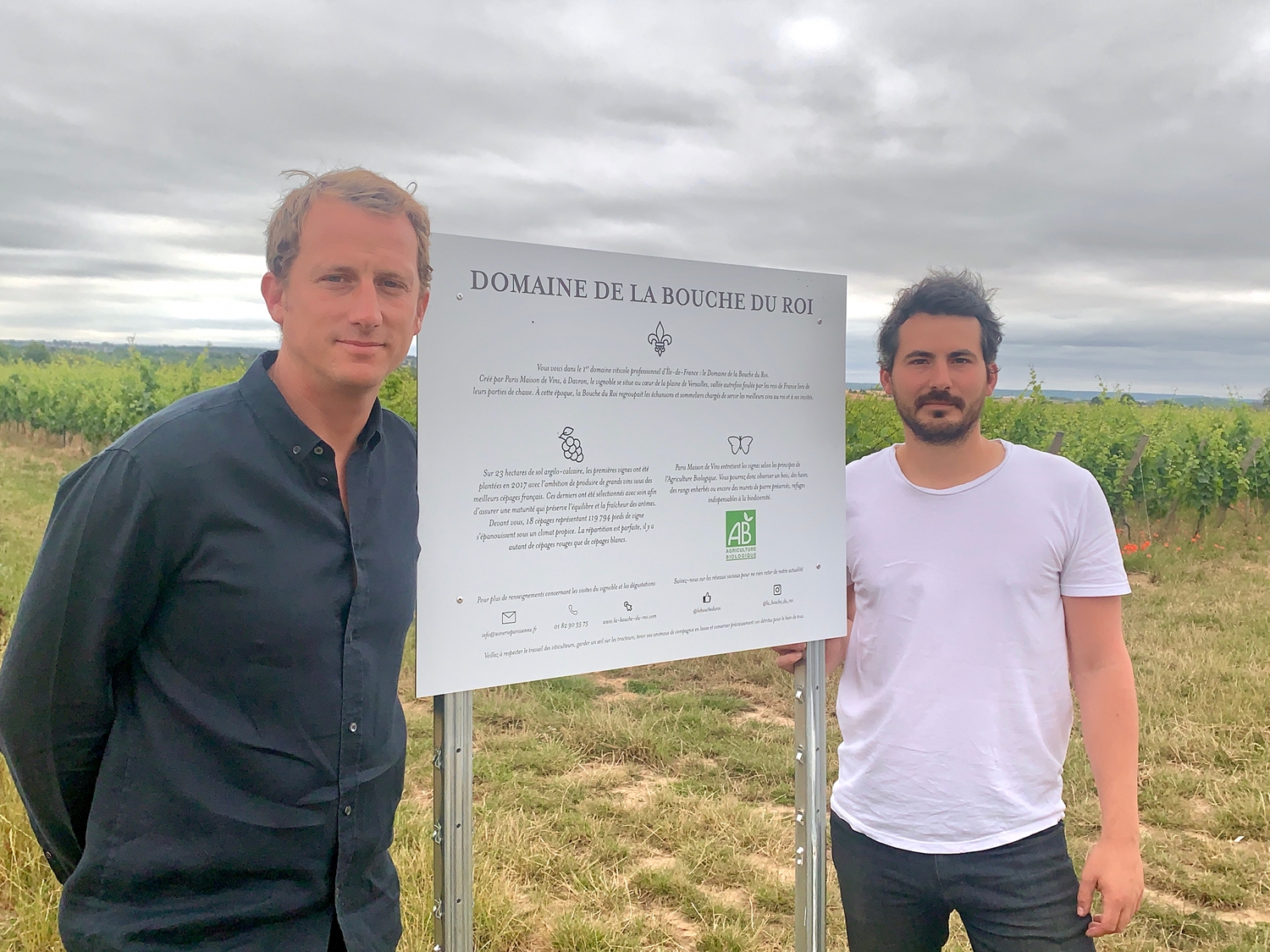 Le domaine, à 144 m au-dessus de la mer sur des sols pauvres calcaires, bénéficie toujours d’un peu de vent qui assainit et évite les maladies. Le trio d’associés en a aussi profité pour replanter une palette de cépages, d’ici et d’ailleurs (gamay, sauvignon gris, côt, arvine, riesling…), des anciens (chambourcin, romorantin), des résistants (floréal, vidoc), au total 8000 pieds de 16 cépages différents au sein d’une parcelle-conservatoire d’1,5 ha afin de procéder à des suivis de maturité puis des essais de micro-vinifications, d’abord dans les chais de Montreuil avant de construire une cave à Davron, sans doute en 2022. Le domaine a été baptisé La Bouche du Roi, en référence au département qui était chargé depuis le XVIe siècle de l’intendance et de l’approvisionnement en nourritures à Versailles, l’échanson choisissant les vins servis à la table royale. La propriété faisait alors partie du domaine offert par le roi à sa maîtresse Louise de La Vallière.