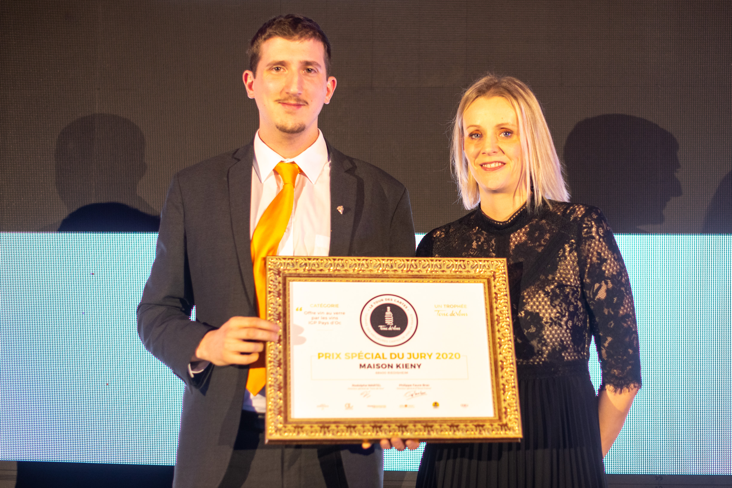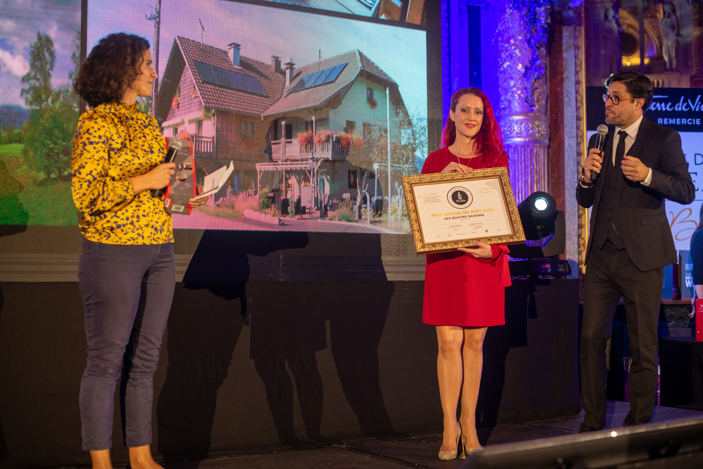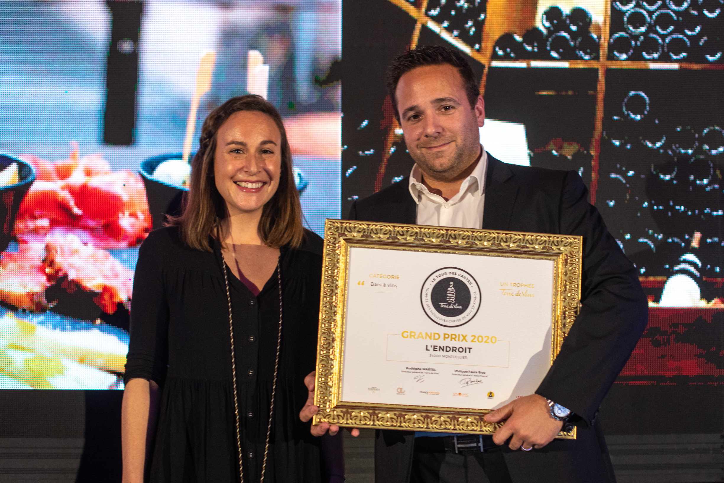 La suite de la soirée s’est enchaînée avec l’annonce des lauréats dans les six catégories majeures du Tour des Cartes : “La Boucherie” pour la catégorie Restaurants de Chaînes Nationales ; “L’Endroit” (Montpellier, 34) pour la catégorie Bars à Vins ; le “Wine Bar Le Cheval Blanc” (Nîmes, 30) pour la catégorie Brasseries, Bistrots et Restaurants Bistronomiques ; “Marius” (Pornic, 44) pour la catégorie Restaurants Traditionnels ; “Le Chapon Fin” (Bordeaux, 33) pour la catégorie Restaurants gastronomiques ; et enfin la “Table d’Olivier Nasti” (Kaysersberg, 68) pour la catégorie Restaurants gastronomiques de prestige. Six lauréats qui sont donc les grands gagnants de l’édition 2020 du Tour des Cartes et incarnent l’excellence de la restauration française en matière de cartes des vins (suivre ce lien pour voir le palmarès complet avec les finalistes).