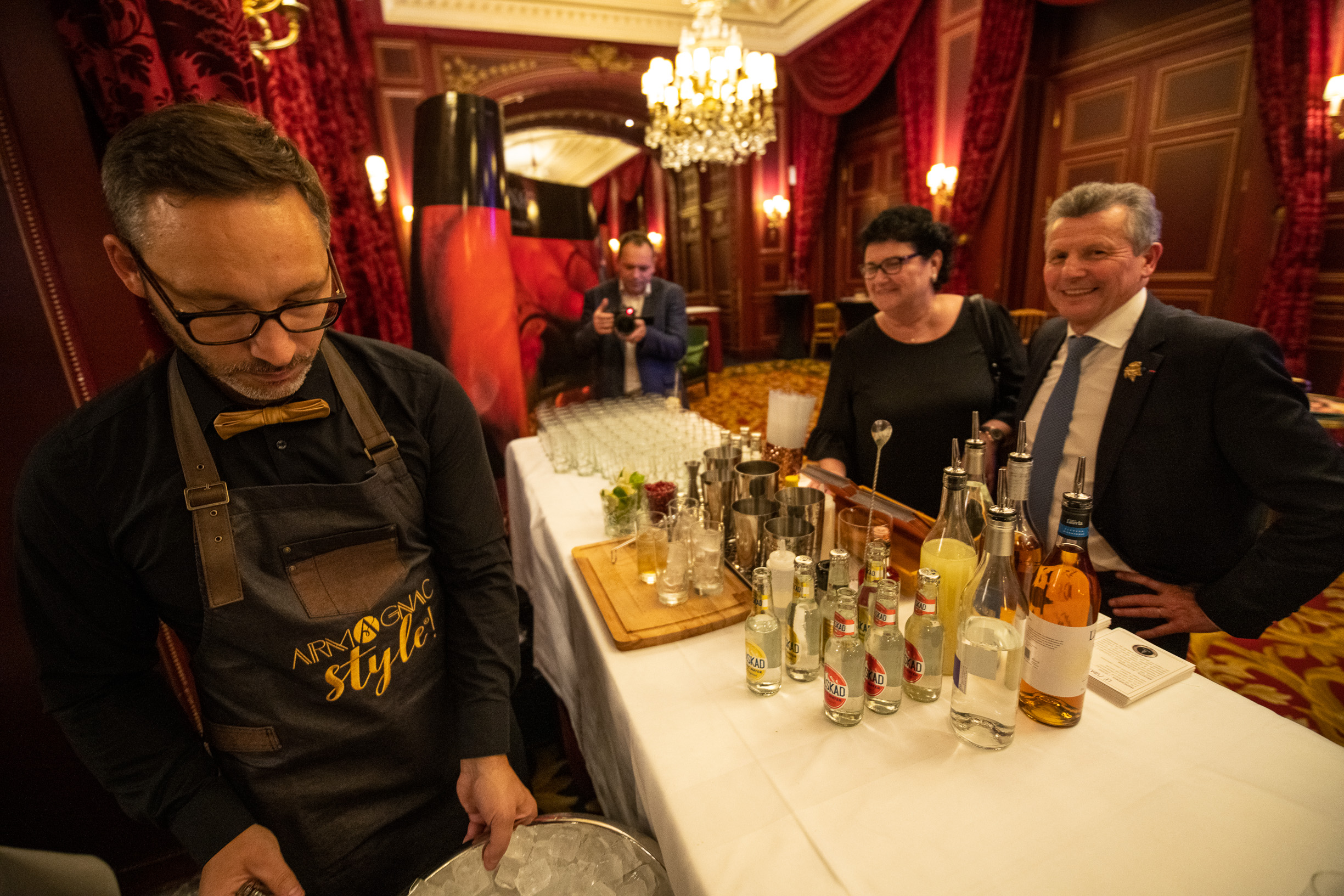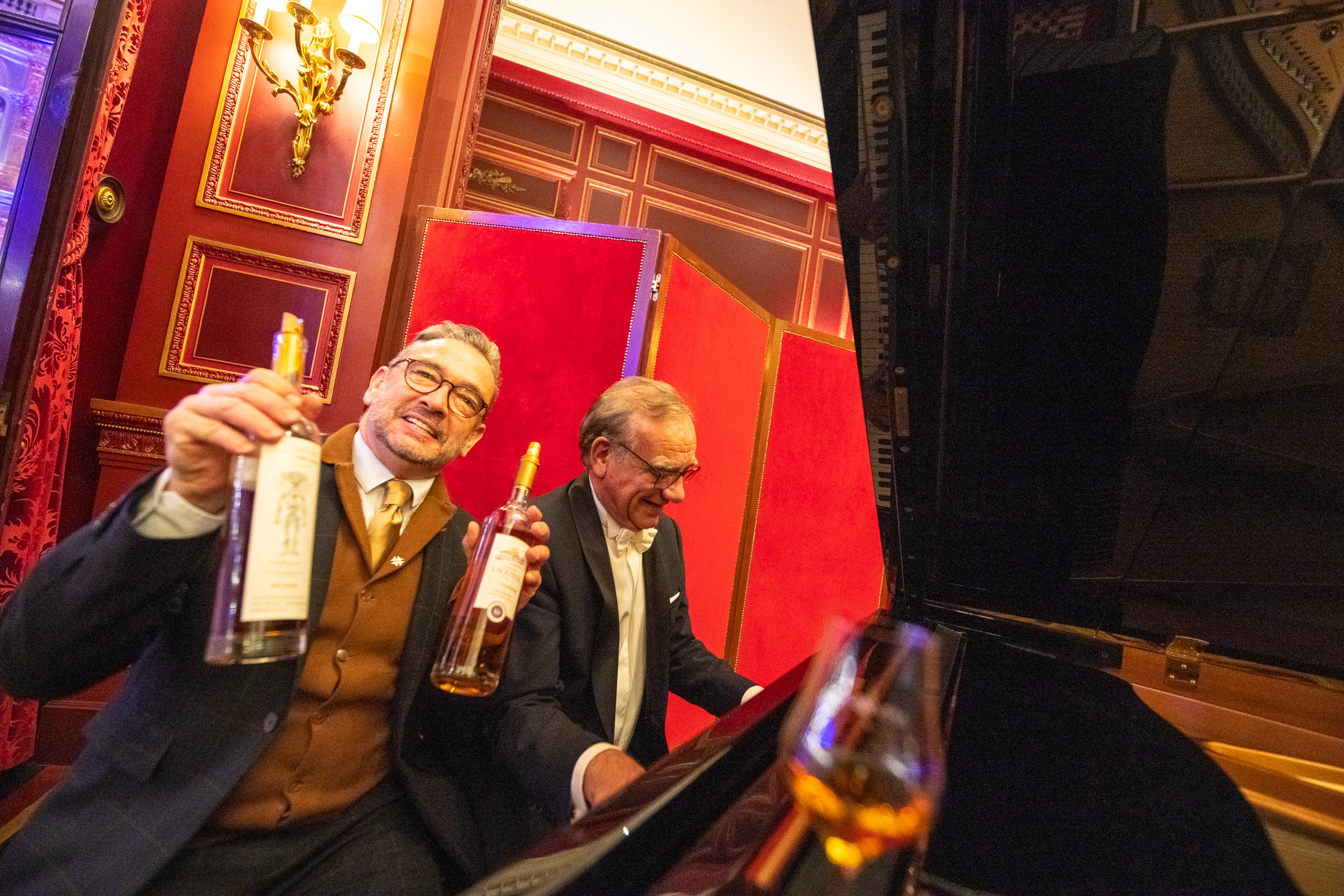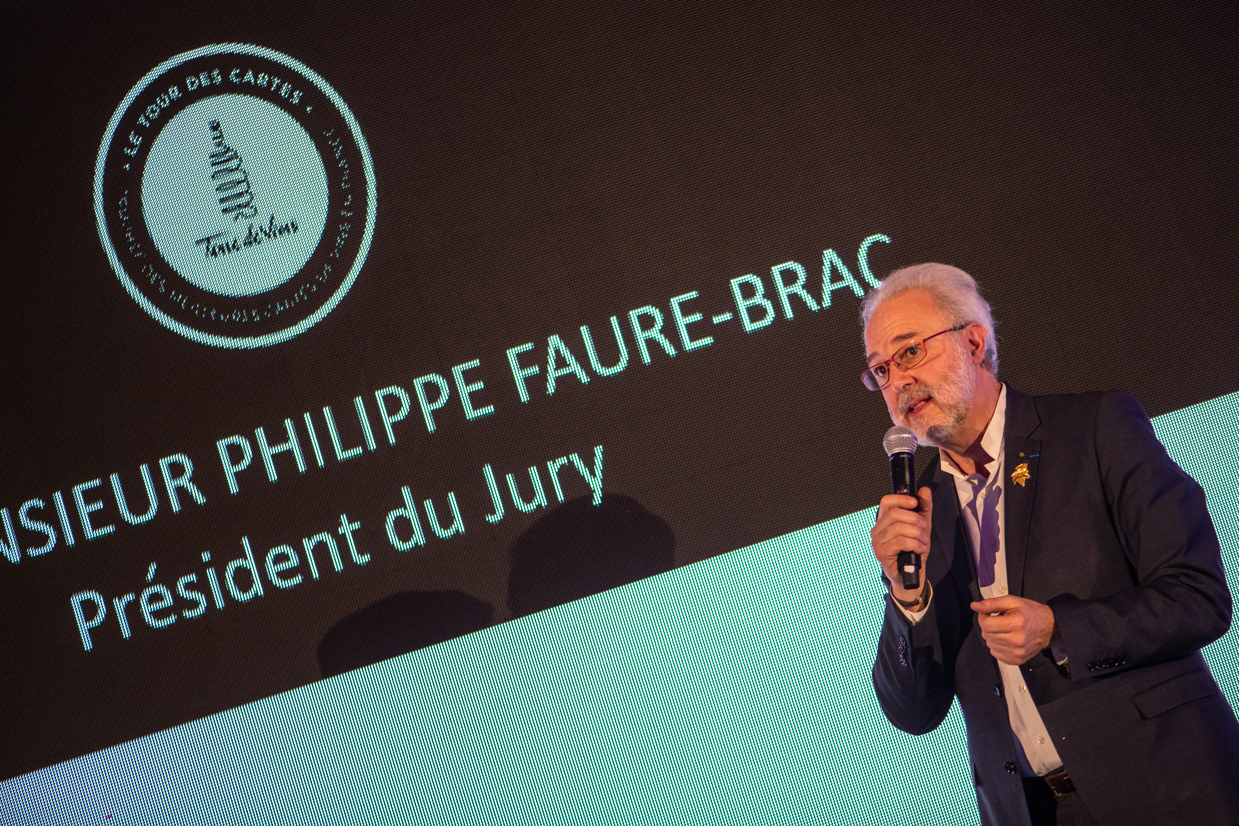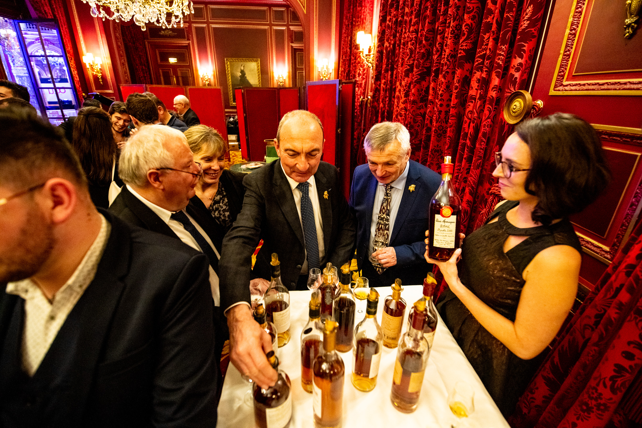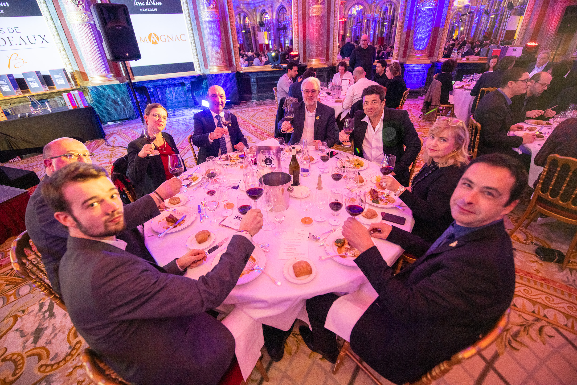 Avant que tout ce beau monde se réunisse dans un salon annexe de l’Intercontinental pour déguster quelques merveilles d’Armagnac (en digestif ou en cocktail), le mot de la fin est revenu au parrain de la soirée, Patrick Bruel, qui bien qu’habitué des cérémonies du monde du cinéma ou de la musique, nous a confié être “très touché par l’ambiance chaleureuse de cette soirée du Tour des Cartes. Il n’y a ici que des passionnés, des établissements à découvrir – mais aussi des vins. J’ai fait de belles découvertes ce soir, notamment un Sociando Mallet 2011 que je ne connaissais pas”, explique celui qui a connu sa première émotion au fond d’un verre de Lafite 1929 à l’âge de… 12 ans. “Le vin c’est de la rencontre, c’est du partage, et cette cérémonie permet de saluer des établissements qui célèbrent cela. Quand je suis en tournée, nous mettons toujours un point d’honneur avec les musiciens à dénicher dans chaque ville de bonnes adresses pour bien manger et bien boire, surtout des bistrots, qui font une vraie cuisine du cœur. On a pu trouver des tables à Aurillac, absolument merveilleuses, et à des prix incroyables ! Pour moi c’est très important, je ne conçois pas de ne pas partager ces moments autour d’une table ou d’une bouteille, qui sont les meilleures façons de prolonger des moments”. Néo-vigneron depuis peu de temps dans le sud de la Vallée du Rhône (voir “Terre de Vins” n°63 en kiosques cette semaine), sait que le vin est affaire de temps long, d’humilité et de transmission – la transmission qu’il souhaite faire à ses enfants lorsque les vignes auront 30 ou 50 ans. En attendant, il savoure ce fil conducteur entre musique, cinéma, gastronomie et vin : celui de la passion.
