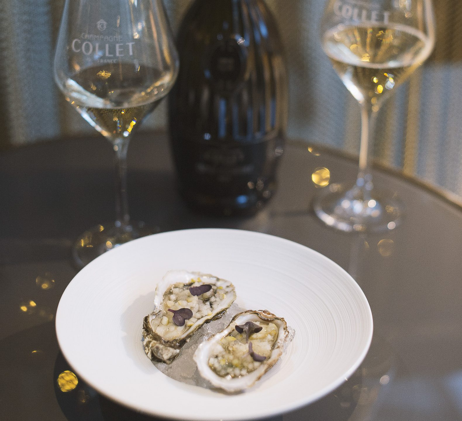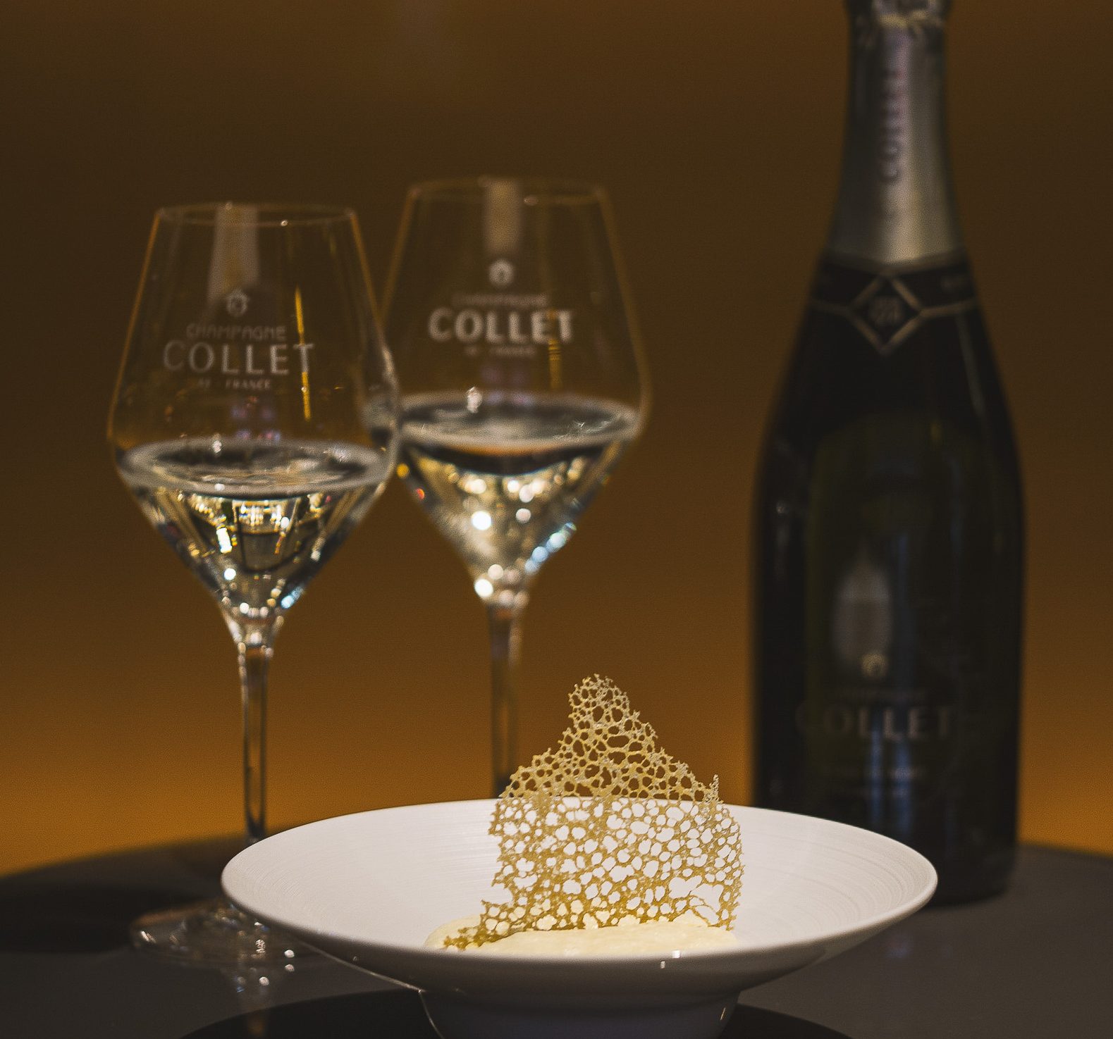 Cet événement a été pensé main dans la main entre les équipes de l’hôtel et celles de chez Collet. Plus qu’un simple bar à champagne feutré, l’expérience se veut plus complète. Pour l’occasion, des cocktails (25€) à base de la cuvée brut art déco ont donc été créés par le chef barman Pierre Galea et vont réveiller les papilles à l’image de l’Origami associant yuzu et thé matcha ou du Rubis alliant cognac et nectar de fraise. L’esprit Art Déco du lieu, très inspiré par les codes du champagne Collet né en 1921, invite à renouer avec l’esprit audacieux de cette période et à goûter les créations imaginées par le chef (à partir de 19€). Chacune des cuvées a en effet été imaginée en accord avec une bouchée qui permet de la sublimer comme le rosé dry collection privée avec du foie gras lollipop coque framboise ou bien le brut art déco avec une mousseline de panais et saint-Jacques citronnées. Une raison supplémentaire, s’il en fallait une, d’aller découvrir ce lieu exclusif et hors-du-temps qui permet de s’évader de l’agitation extérieure le temps d’un instant suspendu.
