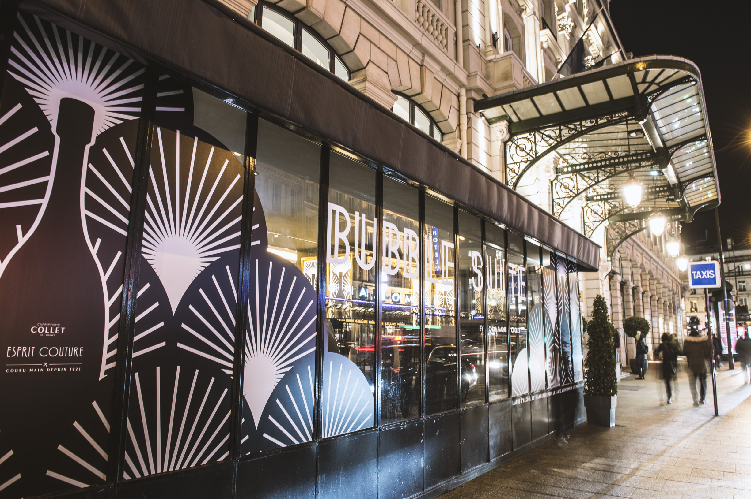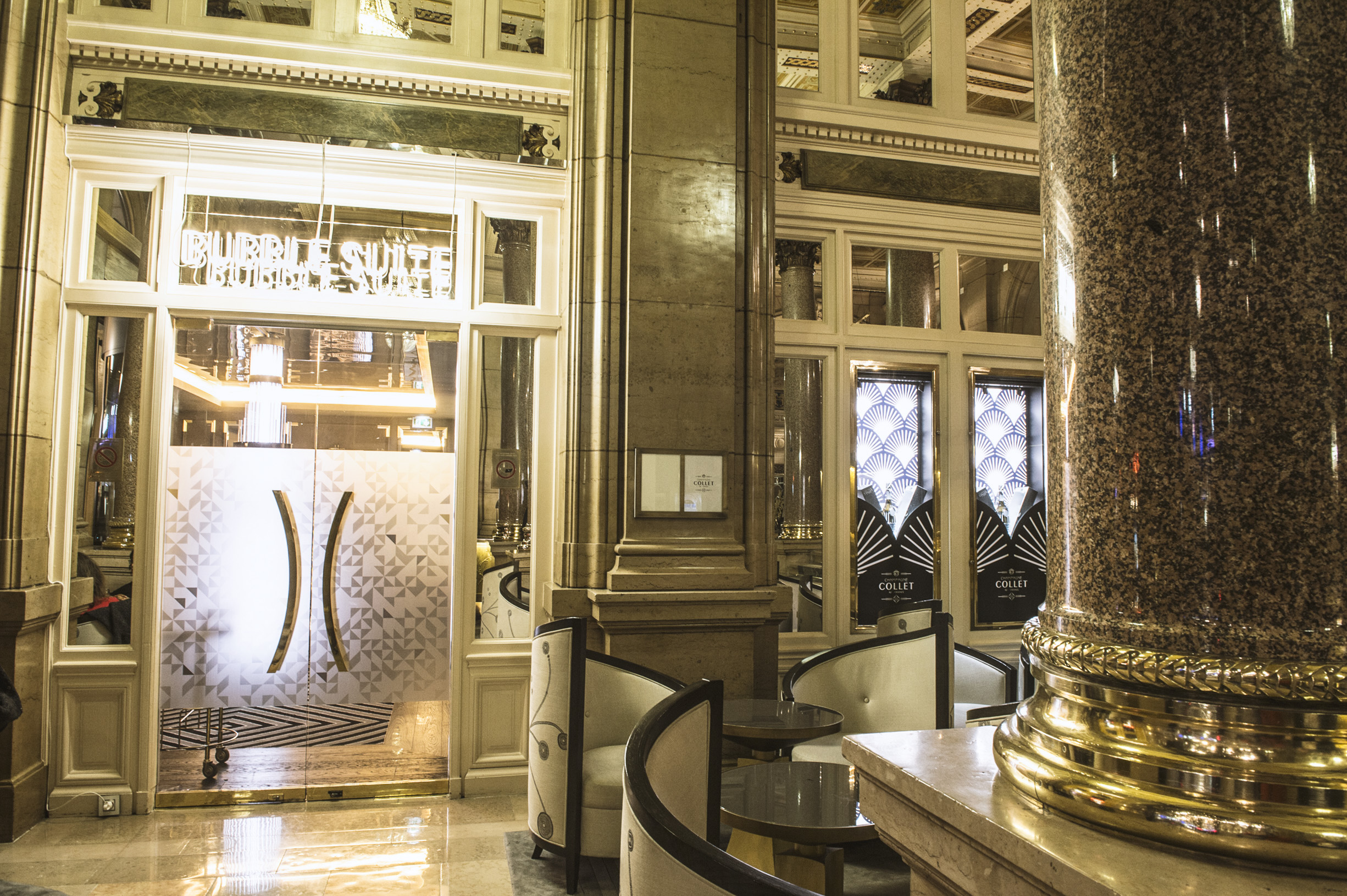 Jusqu’au mois de juin, les amateurs de champagne pourront découvrir un nouveau lieu dédié à l’univers des champagnes Collet. Au sein du splendide hôtel Hilton Paris Opéra situé devant la gare Saint-Lazare et célèbre pour ses incroyables salons classés, un boudoir tout de noir et d’or a été imaginé par Stéphanie Moisan. Cette « Bubble Suite » vous promet de passer un excellent « bubble time », du mercredi au vendredi soir dès 17 heures et jusqu’à 22 heures. Visible depuis la rue mais accessible uniquement depuis l’hôtel, ce lieu inspire à la détente et aux plaisirs de la dégustation. Bien évidemment, une sélection des meilleures cuvées Collet y sera présentée (à partir de 18€), du très classique brut « art déco » aux prestigieuses cuvées haut-de-gamme « brut vintage 2008 collection privée » et « esprit couture ».
