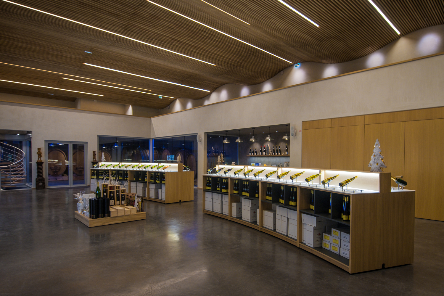 Si leurs projets sont moins pharaoniques, d’autres vignerons indépendants donnent une touche très contemporaine à leur caveau de dégustation. A l’image de l’espace de vente de chez Bott Frères à Ribeauvillé, ou du Pavillon Geneviève du Domaine Robert Roth à Soultz.