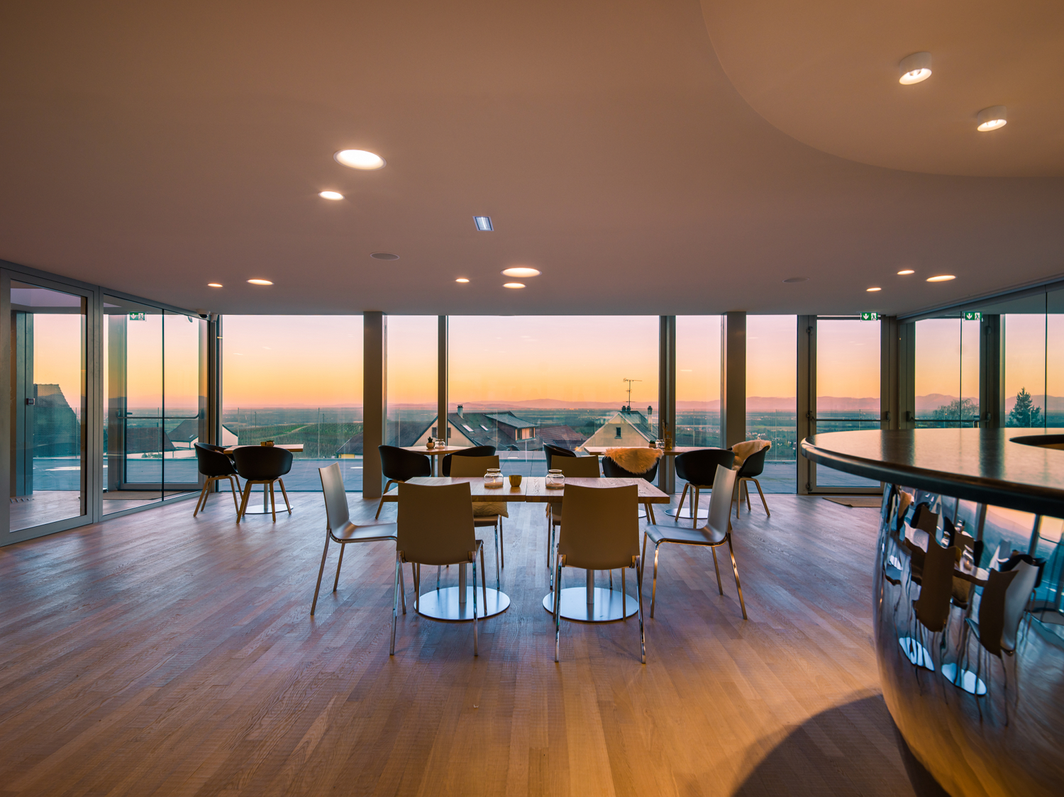 En plein cœur du village de Voegtlingshoffen, le Belvédère porte bien son nom. Dernier né des modernisations architecturales de la Maison Joseph Cattin, ce bar à vin et caveau de dégustation, offre une vue à 360° sur le vignoble, la plaine d’Alsace, les Vosges et la Forêt Noire. Vers Colmar et ses environs, l’endroit est un peu devenu The Place To Be pour boire un verre ou organiser un événement festif.