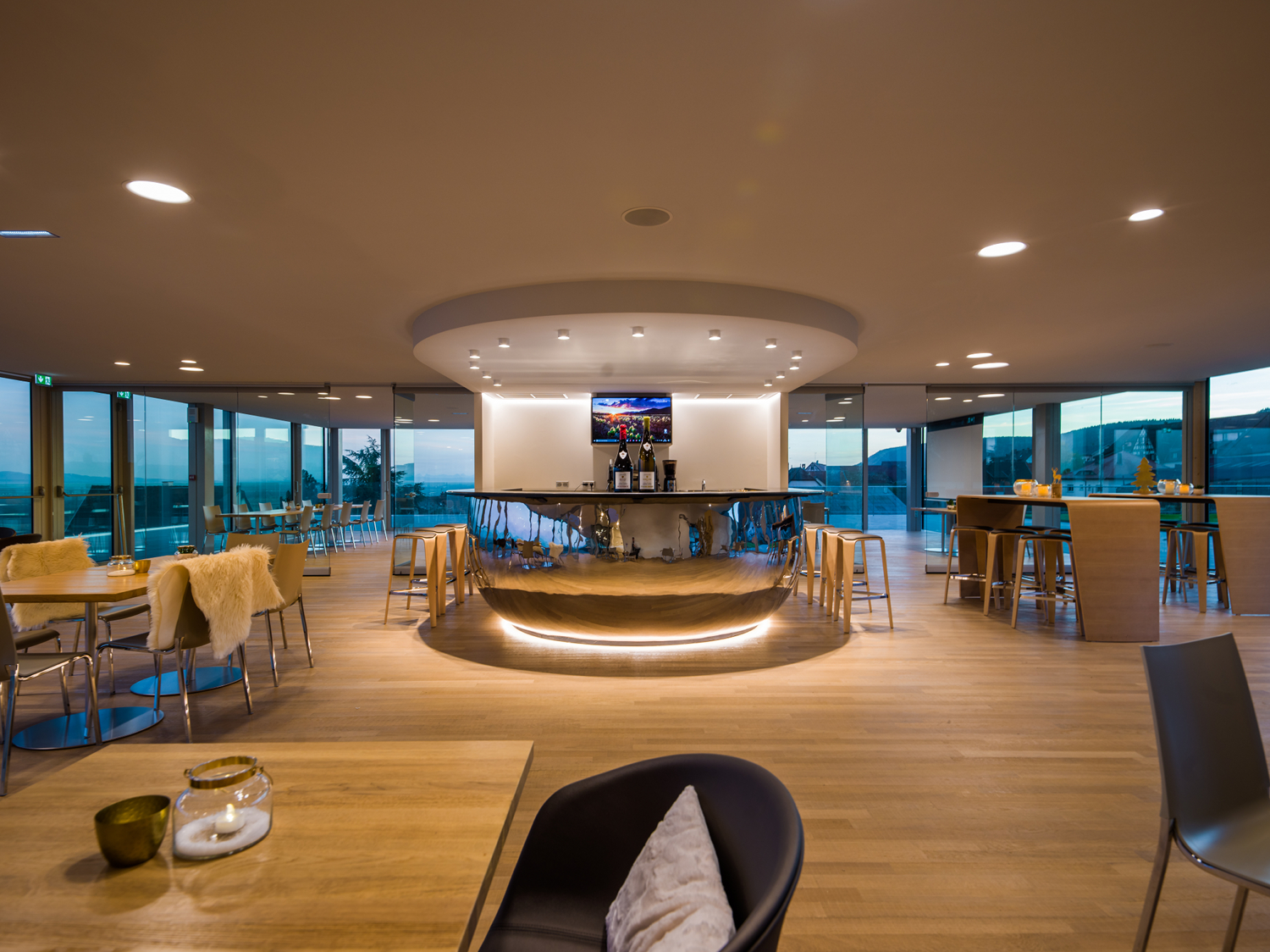 Pour Jacques et Anaïs Cattin, responsables du domaine et initiateurs du projet, ce nouvel outil permet surtout de développer l’œnotourisme, un secteur cher au jeune couple. “La Route des vins est la plus visitée de France, rappelle Jacques Cattin. Pour accueillir ce large public, nous développons de nouvelles activités ludiques autour du thème central du vin.” Ce concept a été pensé pendant deux ans avant l’inauguration de Belvédère en novembre 2017. “Les idées sont venues suite à différents voyages que nous avons fait dans d’autres vignobles du monde, explique Jacques Cattin. Là, nous sommes inspirés d’innovations pouvant être transposées ici.” Architecture novatrice, espace épuré, Cattin revisite complètement le caveau de dégustation traditionnel pour accueillir sa clientèle.