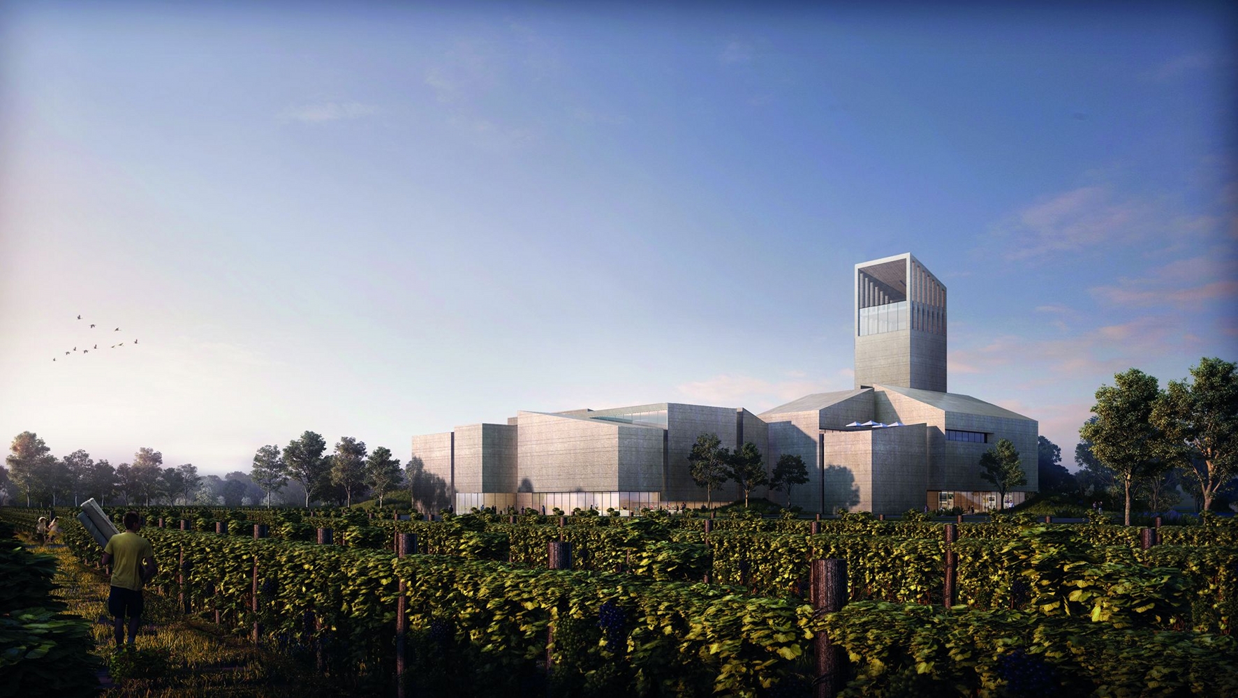 En Chine, les échelles ne sont pas tout à fait les mêmes qu’en Europe. Un exemple ? La ville de Pékin a pour objectif d’accueillir 320 millions de touristes nationaux et étrangers en 2020 (chiffres donnés avant extension du coronavirus, NDLR). On y compte par ailleurs… 6 périphériques successifs et concentriques ! Une nécessité au vu du gigantisme de cette ville de plus de 20 millions d’habitants. C’est justement au-delà de ce dernier périphérique, à une quarantaine de kilomètres de la place Tiananmen que Weixing Tang a eu l’idée un peu folle de créer un vignoble en 1998. Aucune vigne ne se trouvait dans ce district de Fangshan à l’époque et pour cause. Le climat est une véritable gageure, avec des étés brûlants accompagnés de très fortes pluies et des hivers d’une rare vigueur. Mais M. Tang est allé au bout de son projet, créant le château Bolongbao, une propriété entièrement bio depuis l’origine. 20 ans plus tard, ce francophile et francophone s’est presque naturellement rapproché de Philippe Massol, Directeur Général de la Fondation de la culture et des civilisations du vin qui gère la Cité du Vin bordelaise, et de Sylvie Cazes, sa Présidente. Et pour la première fois, l’idée d’un projet commun s’est imposée car “il ne s’agissait pas de répliquer la Cité du Vin en Chine” rappelle Mme Cazes. Outre le musée universel du vin de Pékin, tout un complexe s’articulera autour du vin. Les autorités locales ont rapidement saisi l’intérêt d’un tel pôle touristique novateur pour l’attractivité de la ville. Pékin prendra donc en charge l’investissement nécessaire de 500 millions de RMB (60 millions d’euros) nécessaires à la construction du musée et créera les infrastructures nécessaires (routes notamment). M. Tang sera pour sa part chargé de construire le reste du village et d’exploiter l’ensemble de l’activité du site.