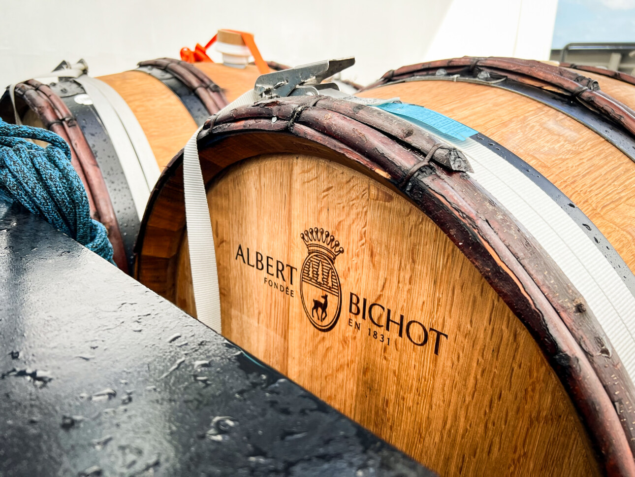 Face aux défis posés par le dérèglement climatique, nous avons souhaité agir depuis plusieurs années à notre humble mesure. C’est pour cela que nous avons initié en 2017 un partenariat de 10 ans avec la fondation d’utilité publique Tara Océan (NDLR : fondée en 2003 par Agnès B.) qui œuvre à une meilleure connaissance scientifique des océans. Ce premier élan nous a conduit à explorer la faisabilité du transport d’une partie de notre production en voilier cargo pour pouvoir réduire notre bilan carbone. Le transport occupe en effet le premier poste de celui-ci, à cause du poids des bouteilles et des émissions des moyens logistiques utilisés. Partant de ce constat, nous avons voulu comprendre l’impact du transport maritime transatlantique sur le vin. Et pour ce faire, nous avons poussé l’expérimentation au plus loin en calant deux pièces (fûts de 228 litres) de bourgogne Côte d’Or chardonnay « secret de famille » 2024 à la proue d’un voilier de notre transporteur à voile Grain de Sail, sans protection, devant la timonerie. Les fûts ont ainsi traversé l’Atlantique et sont revenus en France en ayant connu des conditions extrêmes. Nous les avons envoyés en enfer, exposés a maxima au soleil, au vent salé, aux tempêtes. Grâce à des bondes connectées, nous avons pu suivre les variations de différents paramètres climatiques. Entre le 18 janvier, date du départ de Saint-Malo et le 31 mars, date du retour du bateau, imaginez que la température à l’intérieur des fûts a oscillé entre -3° et 17° quand elle est restée presque stable dans nos caves (entre 14° et 15°). L’humidité a, elle, varié entre 80% et 95% sur le bateau alors qu’elle est restée cantonnée entre 55% et 65% dans nos caves. Ajoutez à cela le tangage permanent du bateau secouant le vin, vous pouvez imaginer que nous étions curieux de découvrir l’impact d’un tel traitement !