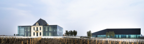 Le château a lui aussi été profondément restructuré avec une enveloppe de verre qui répond, tel un miroir, à l’architecture de verre du chai.