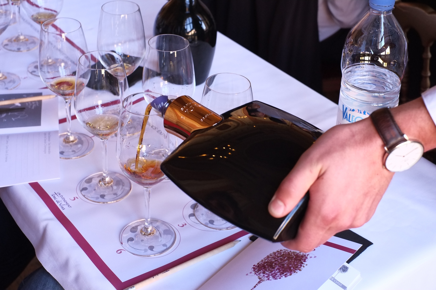 L’entrée en matière : le VSOP Borderies de Camus se signale par le gras de sa matière, un côté très agrume, écorce d’orange, légèrement confite… Un cognac de plaisir qui a permis aux participants de se familiariser en douceur avec les bases de la dégustation. Venait ensuite le Fins Bois 5 ans d’âge de Bourgoin, surnommé “Verseau”, qui se distingue par son style plus rustique, tendu, tonique, et de jolis arômes de poire fraîche. Au tour de Delamain de présenter son grand classique, le Pale & Dry XO (Grande Champagne) : un style très sec mais tout en douceur, peu boisé, sans artifice, matière délicate, florale, saline… Un vrai cognac de gastronomie.
