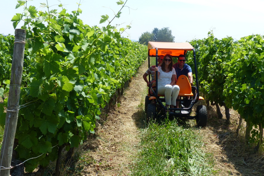 C’est un moyen original de découvrir les différents terroirs de la cave de Tain, en passant par la colline de La Chapelle de l’Hermitage avec son panorama à 360° sur la vallée du Rhône et les ruines du château de Larnage, sur ce sol de terres blanches donnant de la finesse aux vins. Le guide-pilote du buggy explique, lors des deux ou trois haltes, les paysages, les sols de schistes et de granit, l’histoire de L’Hermitage… Une balade de 1 h à 1h 30, au départ de la cave, avec dégustation et visite de la cave de Tain au retour. 57 € (39 € sans la visite de cave).