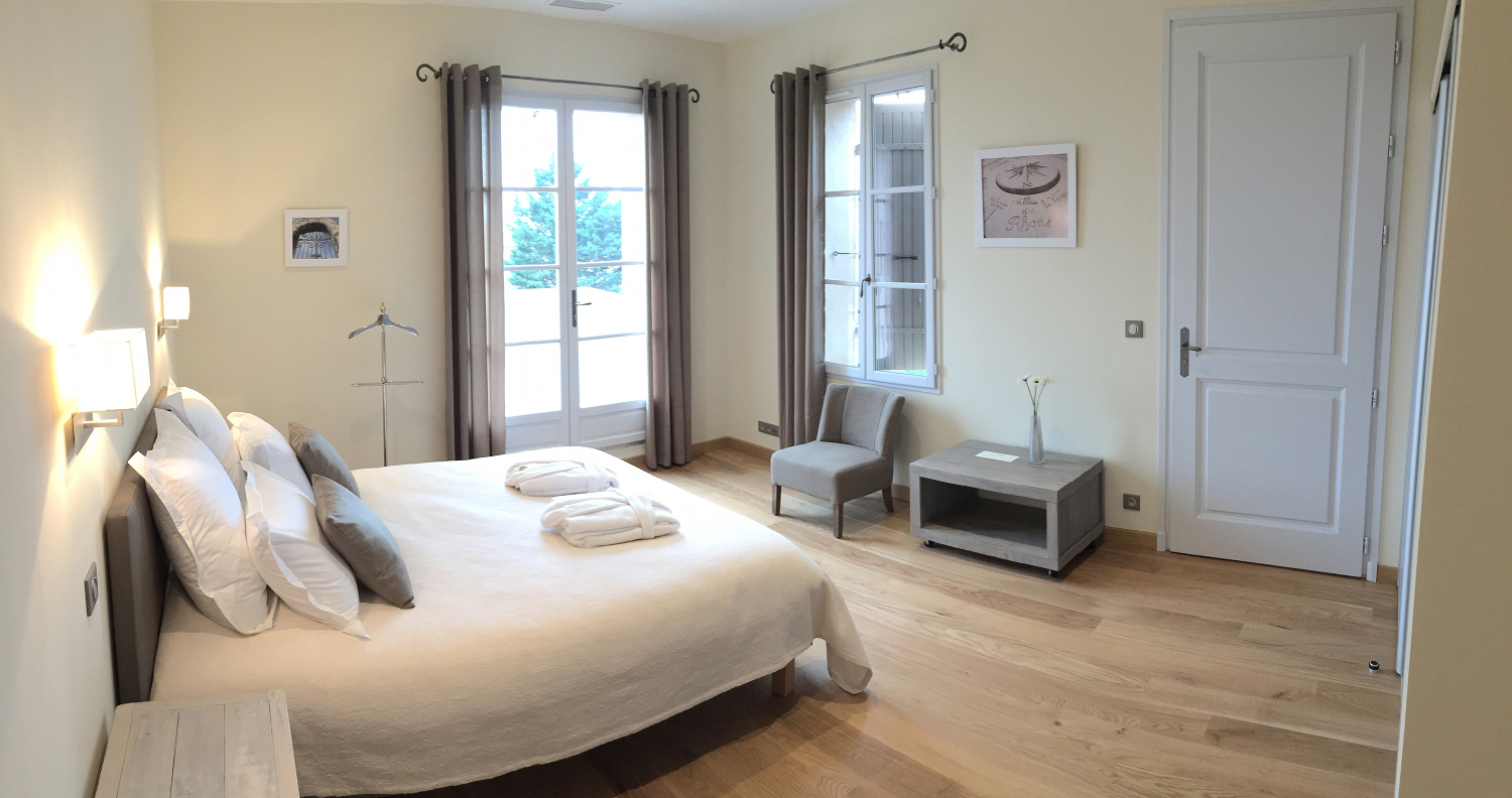 Au cœur de Châteauneuf-du-Pape, la maison historique de la famille Amouroux, fondée en 1880 et luxueusement rénovée, dispose de trois chambres doubles et d’une vaste pièce à vivre équipée d’une table d’hôtes pour 12 personnes. Possibilité d’organiser un dîner mets et vins avec un chef à demeure. 120 € par nuit ou 1 800 € par semaine en formule privative.