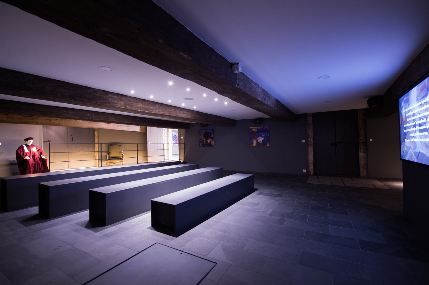 Avec la complicité du scénographe Eric Le Collen, Marie-Hélène Yung-Theron a transformé son ancien chai à barriques en salle de scénographie, utilisée lors des trois formats de visites. Après le visionnage d’un film retraçant l’histoire du château, les visiteurs appréhendent de façon imagée et pédagogique les quatre saisons de la vigne, et s’immergent dans la vie de la propriété et la naissance des vins grâce à une table tactile interactive. Autre nouveauté : pour les enfants (dès 6 ans), un jeu de piste dans la cour du château, guidé par un document imaginé par l’illustratrice Camille Piantanida (2 €/enfant).
