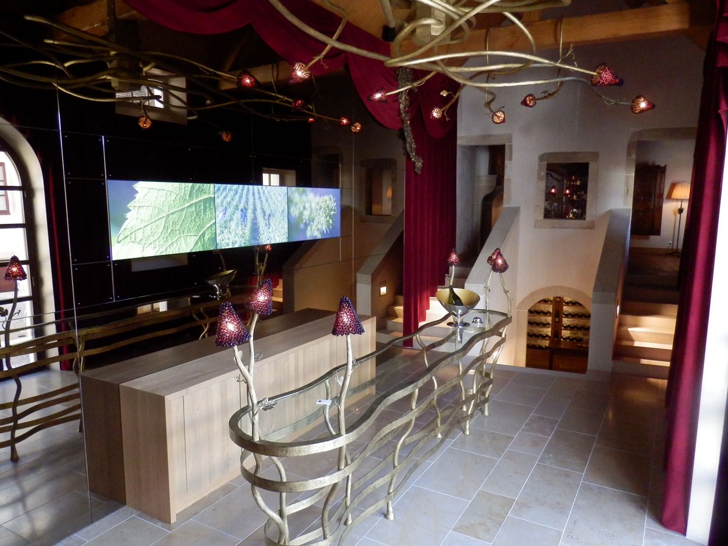 La famille Boisset a ouvert l’année dernière ce site d’œnotourisme original : « La Maison » à Vougeot. Une bâtisse vigneronne située à deux pas du Château du Clos Vougeot revisitée par le décorateur Jacques Garcia. L’ensemble permet de déambuler dans des pièces conçues pour mettre en valeur les vins du domaine de la Vougeraie, de la maison Jean-Claude Boisset et de la marque « JCB by Jean-Charles Boisset ». On y trouve ainsi la Chambre du vigneron, le Boudoir, la Bibliothèque, le Cabinet de Curiosités, etc. Le visiteur passe donc d’une vieille chambre paysanne meublée comme elle devait l’être il y a 150 ans à l’univers « hype » de la marque de Jean-Charles Boisset : des crémants de Bourgogne habillés de noir et d’or, inspiré par l’expérience californienne du fils du fondateur.
