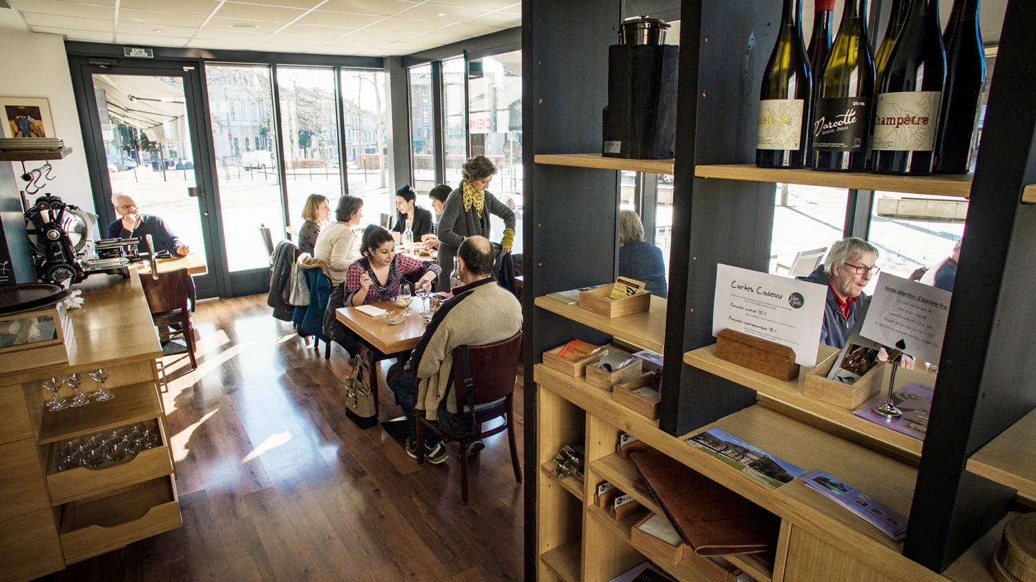 Quartier général de vignerons, ce bistrot original ne « revisite » pas la cuisine, mais travaille simplement et avec justesse les produits du grand Sud-Ouest. Bien vu, la « grappothèque » sur le bar nous apprend à regarder les cépages autochtones qui trônent sur le bar. 250 références de vins, de Gaillac et au-delà, le tout orienté bio. On craque devant les croquettes de pied de cochon à l’heure de l’apéro, et pour le menu du soir signé par Julien Bourdariès (à partir de 25 €). Les vins se servent aussi au verre (à partir de 3,50 €), chaque palais y trouve son compte. Pendant toute la journée, en dehors des services, on peut venir acheter du vin à la cave ou s’offrir un petit grignotage avec un verre de vin.