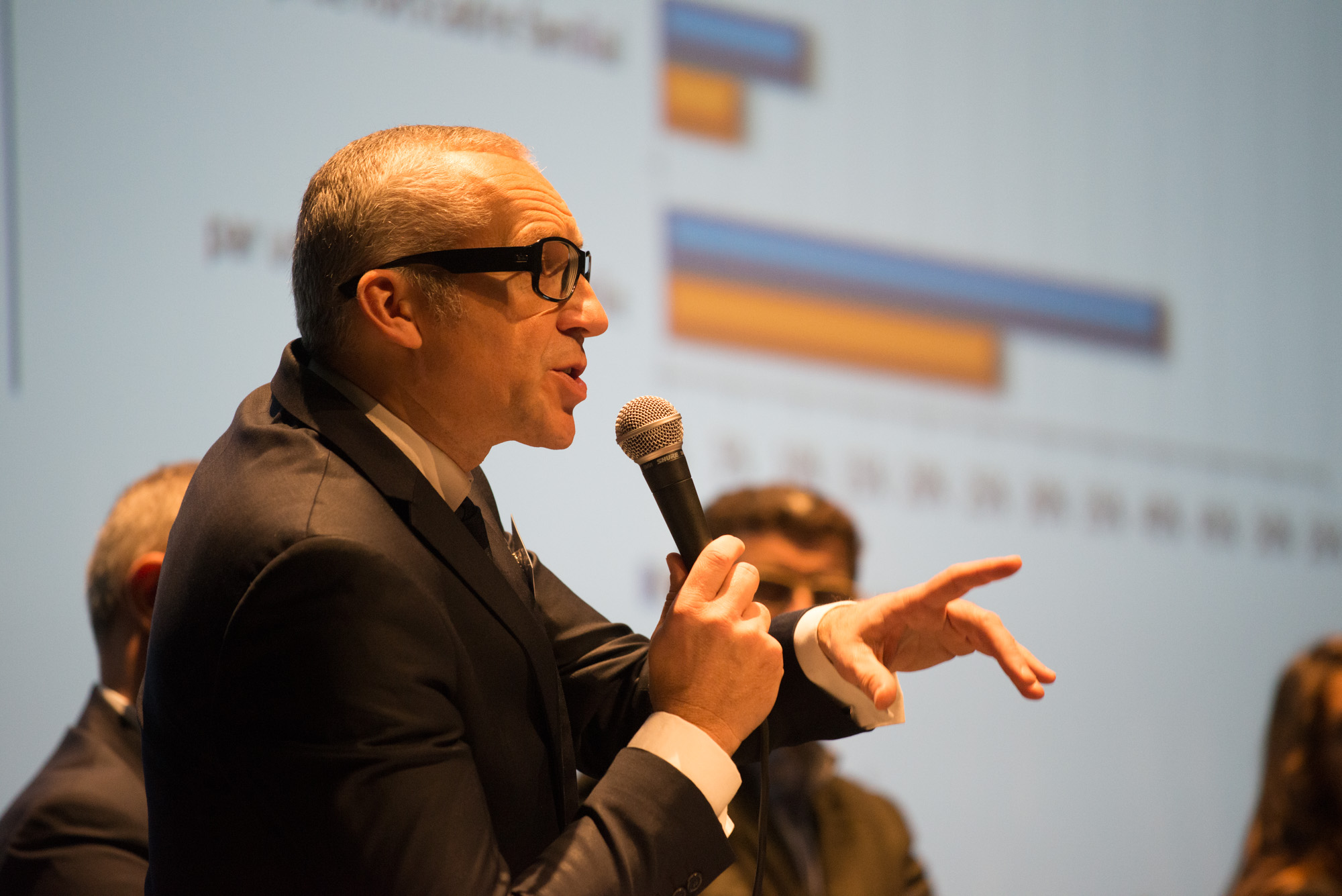 C’est ce dernier qui prend la parole en premier, en resituant quelques éléments clés sur la viticulture en Gironde : elle concerne la moitié de la surface agricole du département, représente à elle seule 5% de la “ferme France”, pèse un poids considérable pour le commerce extérieur régional et national, et constitue le premier employeur du département avec plus de 26 000 salariés. “En 15 ans, le paysage a énormément évolué”, précise-t-il. “En Gironde comme en France, on a perdu un quart des exploitations. Mais là où d’autres régions ont vu leur superficie viticole réduire de 18 à 20%, la Gironde n’a vu la sienne baisser que de 5%, ce qui signifie que les exploitations se sont agrandies. Le vignoble girondin est souvent en avance sur la nature des structures, de plus en plus sociétaires, sur l’importance de la main d’œuvre salariée, sur le niveau de formation des chefs d’exploitation. Mais ces derniers sont souvent plus âgés que dans les autres régions, ce qui soulève fortement la question de la transmission : pour les 1600 viticulteurs de plus de 55 ans valorisant 20 000 hectares de vignes, la reprise est un enjeu d’avenir.”