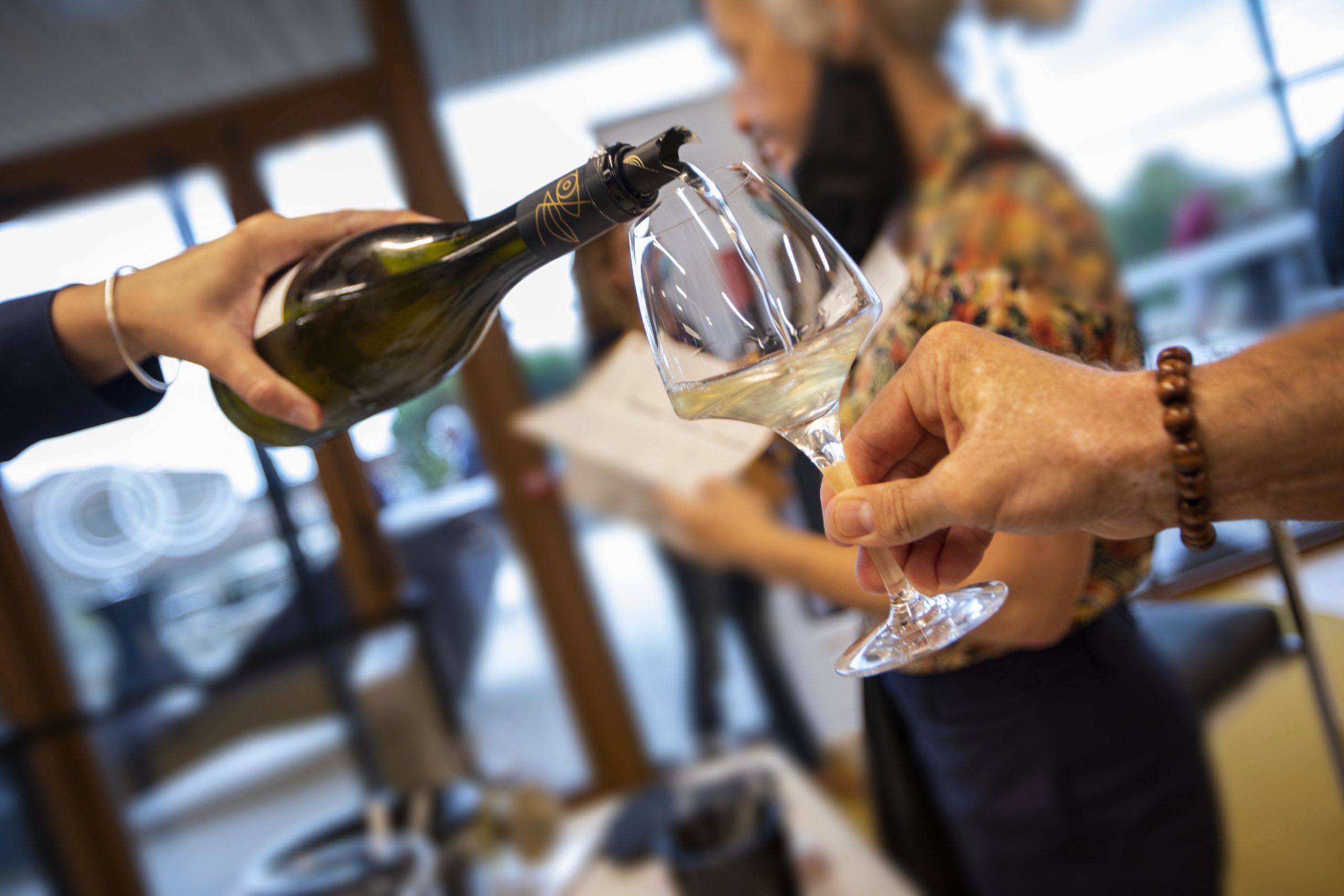 Sophie et Benjamin, à peine trentenaires, mangent les petits canapés servis tout en se concentrant sur les vins Calmel & Joseph. Elle travaille dans l’export. Lui s’occupe du bar à vins du marché du Lez à Montpellier. Tous les jours, il fait découvrir les vins de la région. Il est venu parce qu’il cherche des vins d’ici, différents et plaisirs pour ses clients. Avec une palette aromatique aussi diverses que celle du label Pays d’Oc IGP. En rosé, blanc, rouge. En bio, en développement durable, en conventionnel. Ou sans sulfites ajoutés comme la cuvée Tout Naturellement 2019 du domaine Py qui explose de fruits rouges gourmands.
