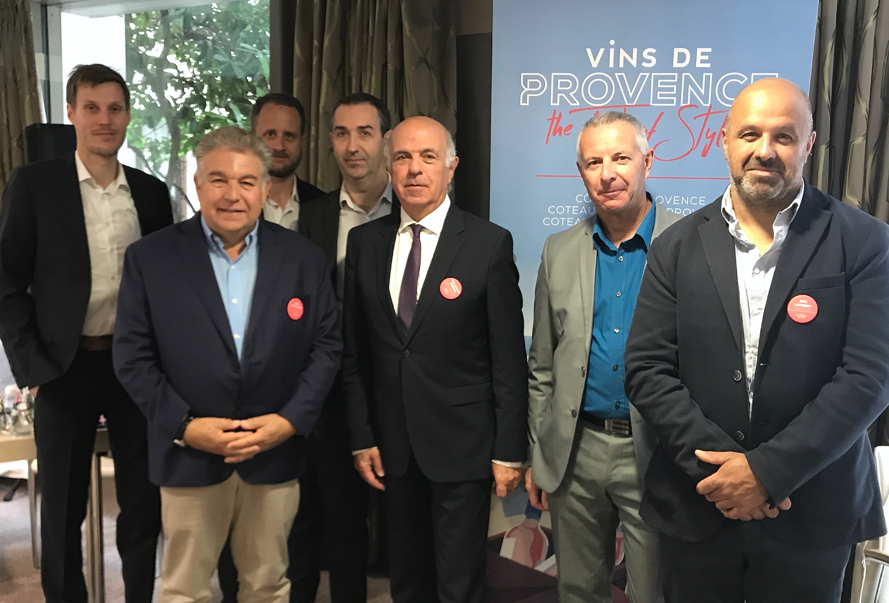 De gauche à droite, Thomas Giroud, directeur du syndicat des Coteaux Varois en Provence, Eric Pastorino, président du syndicat des Cotes-de-Provence, Brice Eymard, directeur du CIVP, Nicolas Garcia, directeur du syndicat des Côtes-de-Provence, Jean-Jacques Bréban, président du CIVP, Didier Pauriol, président du syndicat des Coteaux d’Aix-en-Provence et Eric Lambert, président du syndicat des Coteaux Varois-en-Provence.
