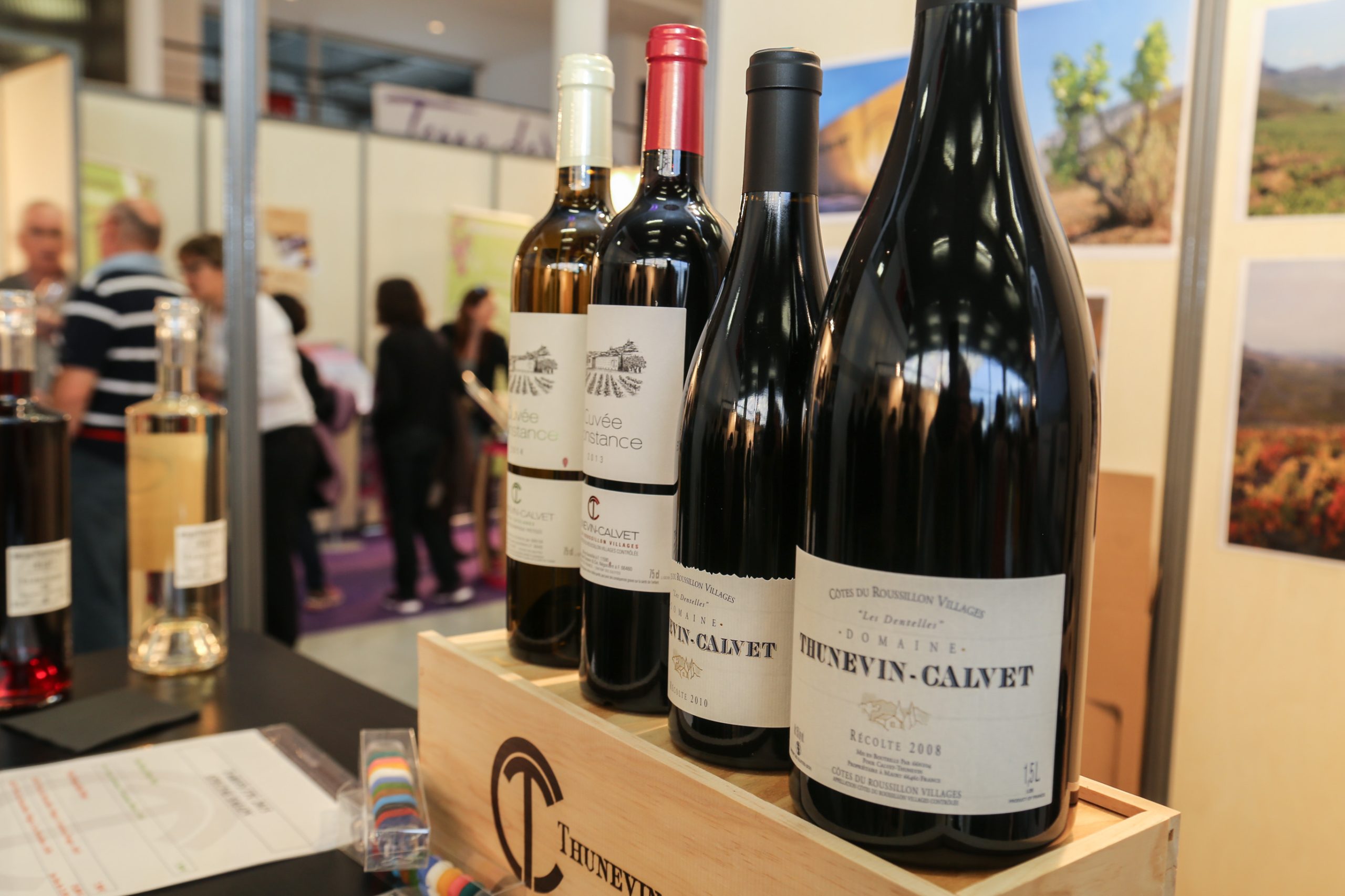 Dans les allées du salon « à échelle humaine », 58 exposants, présentant d’un à une dizaine de vins à déguster. Une invitation à faire un tour de France, et avec un tiers d’exposants du Languedoc, mais aussi d’Alsace, Beaujolais, Bordeaux, Bourgogne, Champagne, Charente, Loire, Sud-Ouest et vallée du Rhône. La présence du Roussillon voisin illustrait bien la diversité de vignerons du Sud. Bio et nature, l’unique cuvée « 100% Carinyana », des vignes de carignan centenaires de Raymond Manchon, 6ème génération de vignerons, du domaine Bota Nostra à Estagel, et le duo de grenache blanc et rouge du domaine Amistat, créé par Julien Ditté et Olivier Cazenave en 2012, près de Perpignan. Historique et familial avec le domaine Vial Magnières à Banyuls, Olivier Sapéras présentant sa collection de vieux millésimes de VDN, dont l’unique Al Tragou 1988. Innovant avec le domaine Thunevin Calvet, crée à Maury en 2001 ; Coopératif avec la SCV coopérative château de Pena à Cases de Pène.