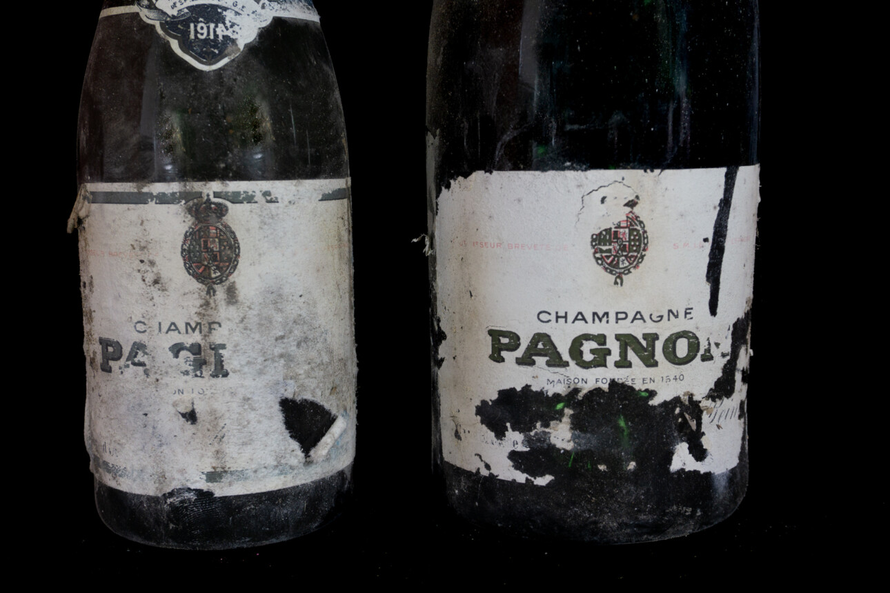 Anciennes étiquettes de la Maison Legros-Pagnon exhumées lors de la redécouverte des caves ©ChampagneGardet
