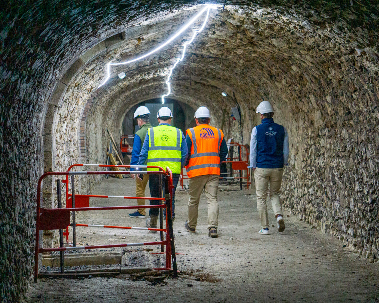 Trois années de travaux ont été nécessaires pour réunir les deux réseaux. Creuser sur vingt-cinq mètres, à quinze mètres de profondeur, dans un sous-sol aussi fragile que la craie, relevait du défi. Relier ces deux mondes n’allait pas de soi. Sous la Montagne de Reims, la craie impose ses règles : friable, vivante, exigeante. Le chantier a exigé une précision d’orfèvre, mobilisant des techniques inspirées du percement du tunnel sous la Manche, via l’intervention de tunneliers adaptés. Chaque geste devait être maîtrisé pour préserver la stabilité de l’ensemble et tout à la fois l’esthétisme originel des caves centenaires. Une fois la jonction réalisée, un travail minutieux de restauration et de conservation a été engagé. L’objectif était de ne rien altérer, conserver tout à la fois l’esprit des lieux et transmettre l’émotion ressentie à leur découverte. Aujourd’hui, ces galeries ne sont plus seulement un héritage redécouvert. Elles prennent un nouveau souffle, et redeviennent un outil. Une extension discrète, mais précieuse, qui permet d’affiner les pratiques de la maison. Mais l’essentiel est peut-être ailleurs. Les anciennes caves Legros-Pagnon ne racontent pas seulement leur propre histoire, elles éclairent aussi celle de Gardet, et plus largement celle de la Champagne et de son patrimoine exceptionnel. C’est cette dimension que la maison Gardet, profondément attachée à ses racines champenoises, souhaite désormais partager.
