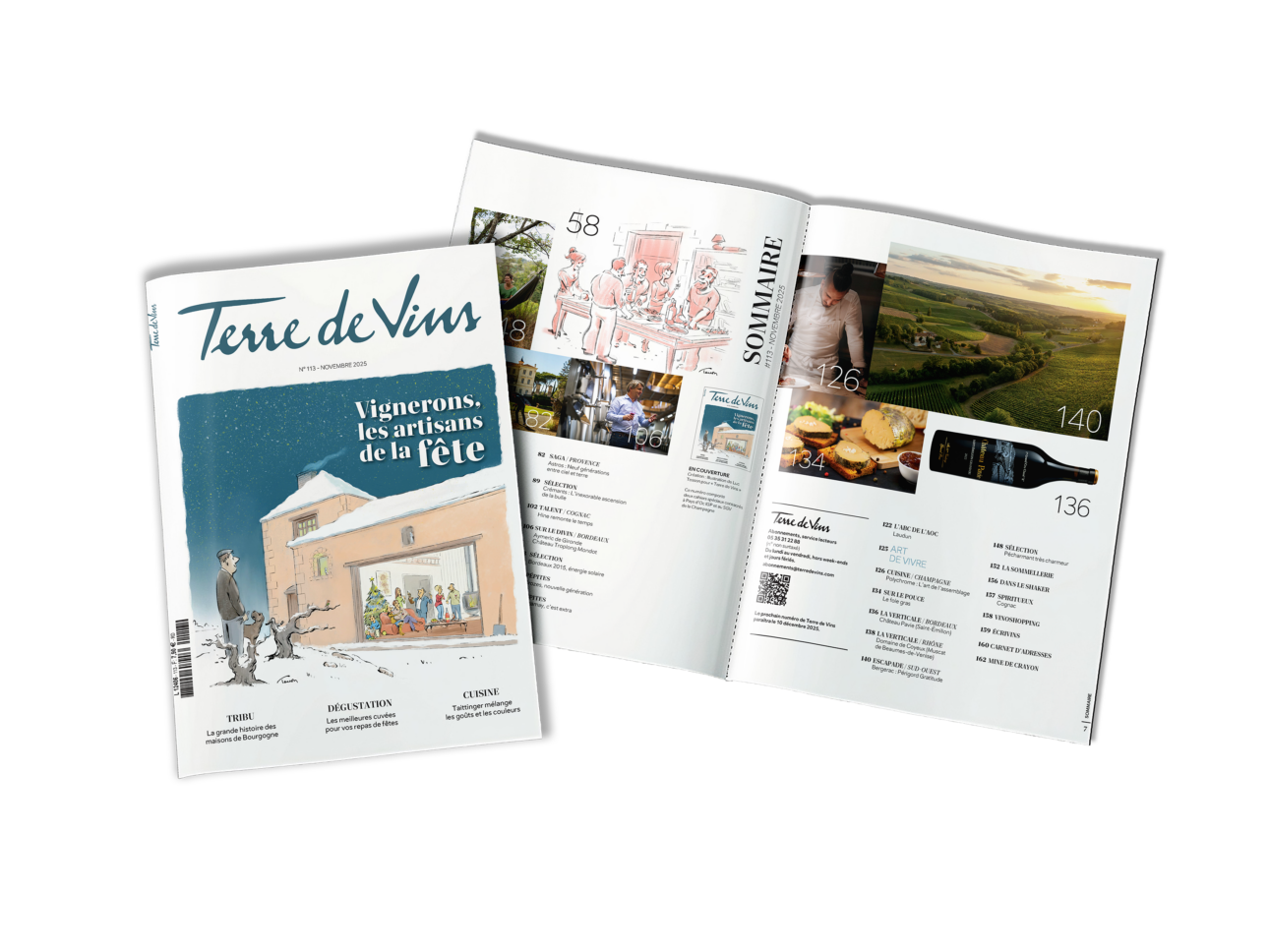 Pourquoi un numéro consacré aux fêtes de fin d’année dès novembre ? Parce que les fêtes ne s’improvisent pas, que les préparer exige du temps, sélectionner les vins le plus grand sérieux. Du moins, c’est ce que nous croyons à la rédaction de Terre de Vins. Pour que la trêve des confiseurs soit aussi celle des vignerons, nous la préparons à l’avance. Une parenthèse se ménage, surtout dans la frénésie contemporaine et l’incertitude actuelle : offrez-vous un avant-goût des fêtes avec le dernier numéro de Terre de Vins…